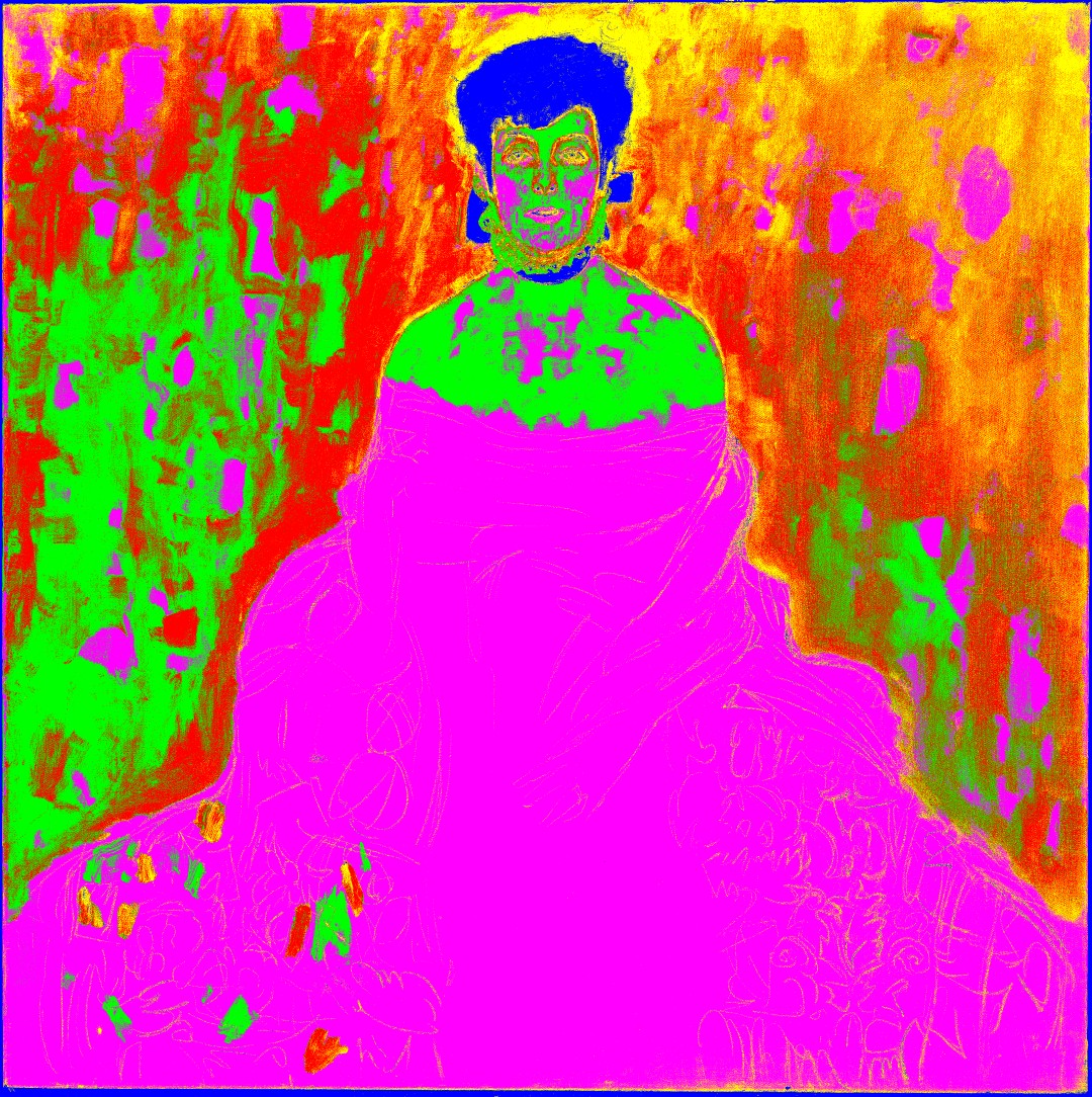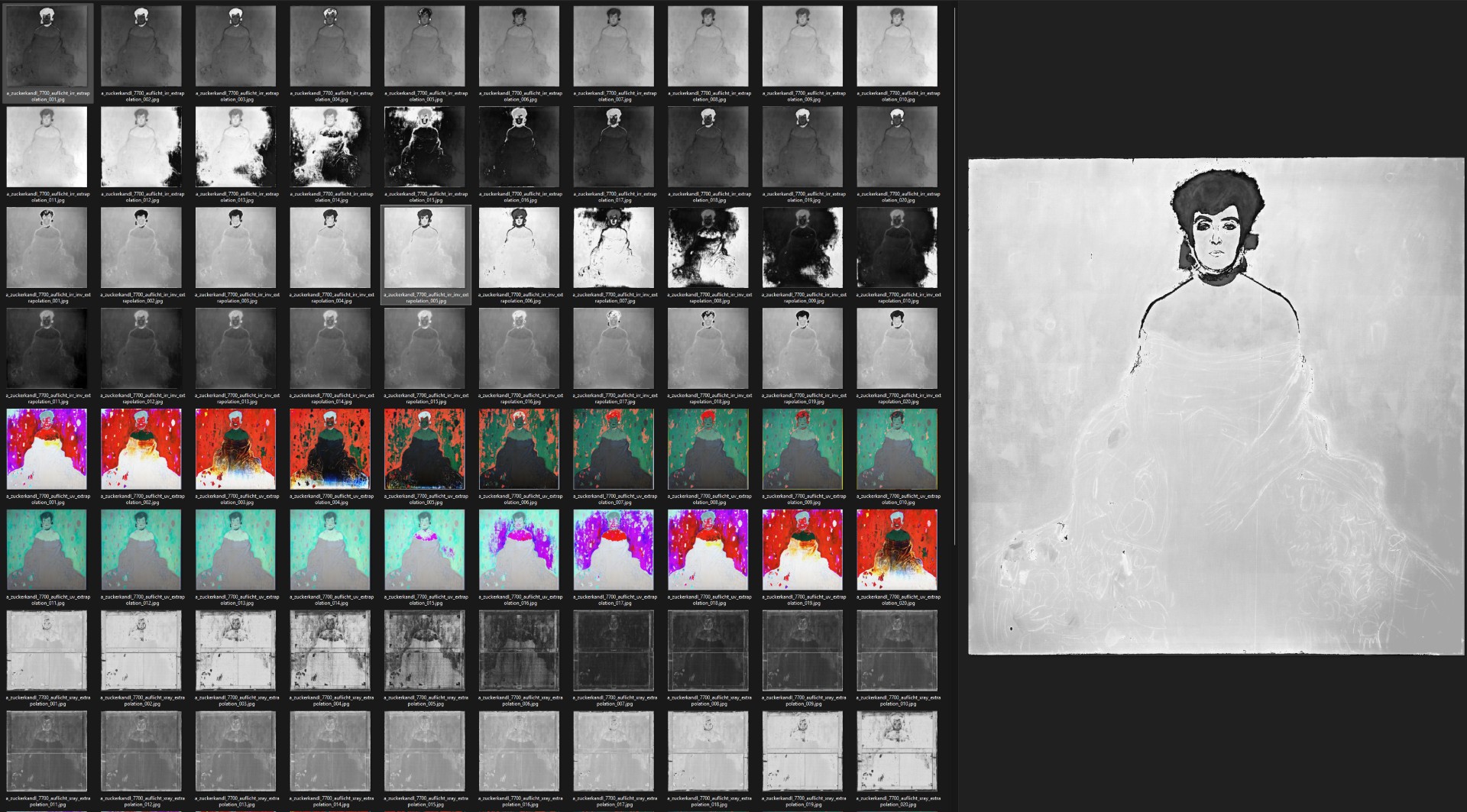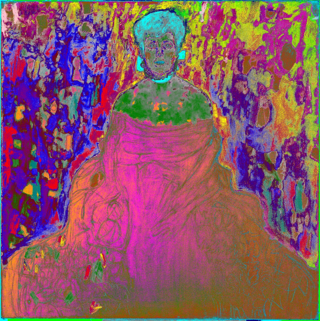 These different imaging techniques each reveal distinct aspects of Klimt's process – the visible surface