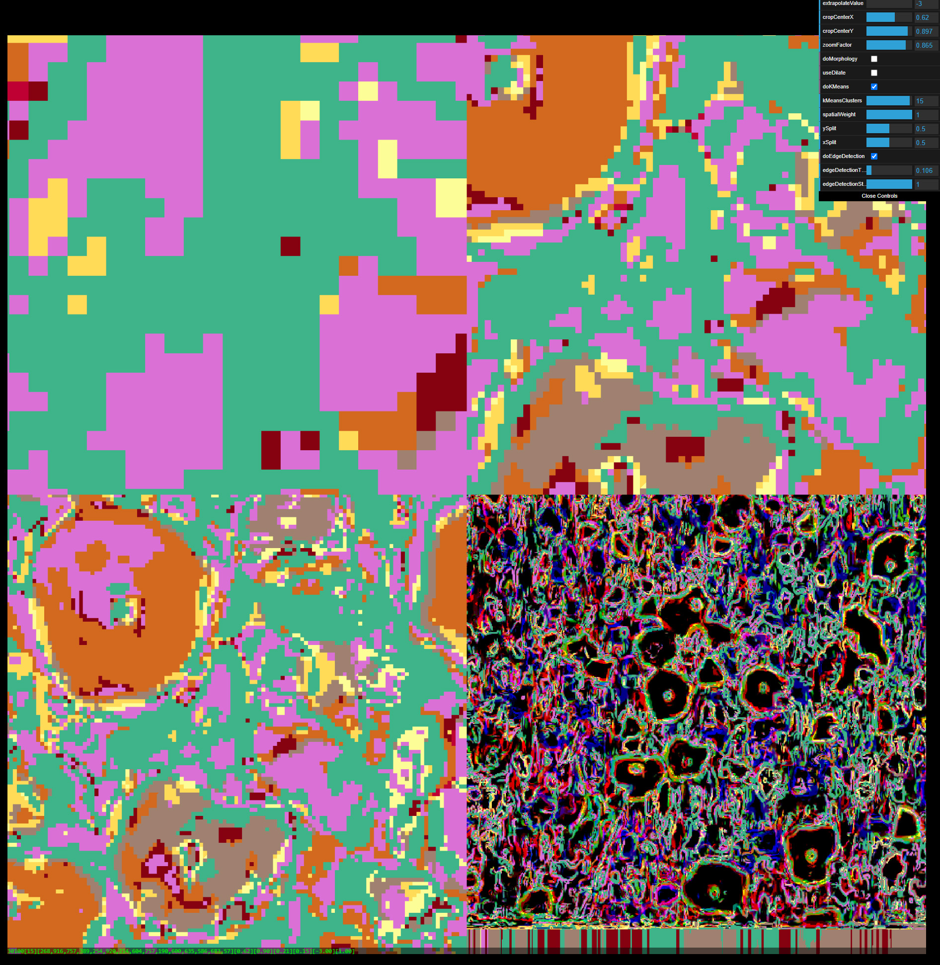 workflow: k-means on low-res cropped image. then scale to 2000x2000