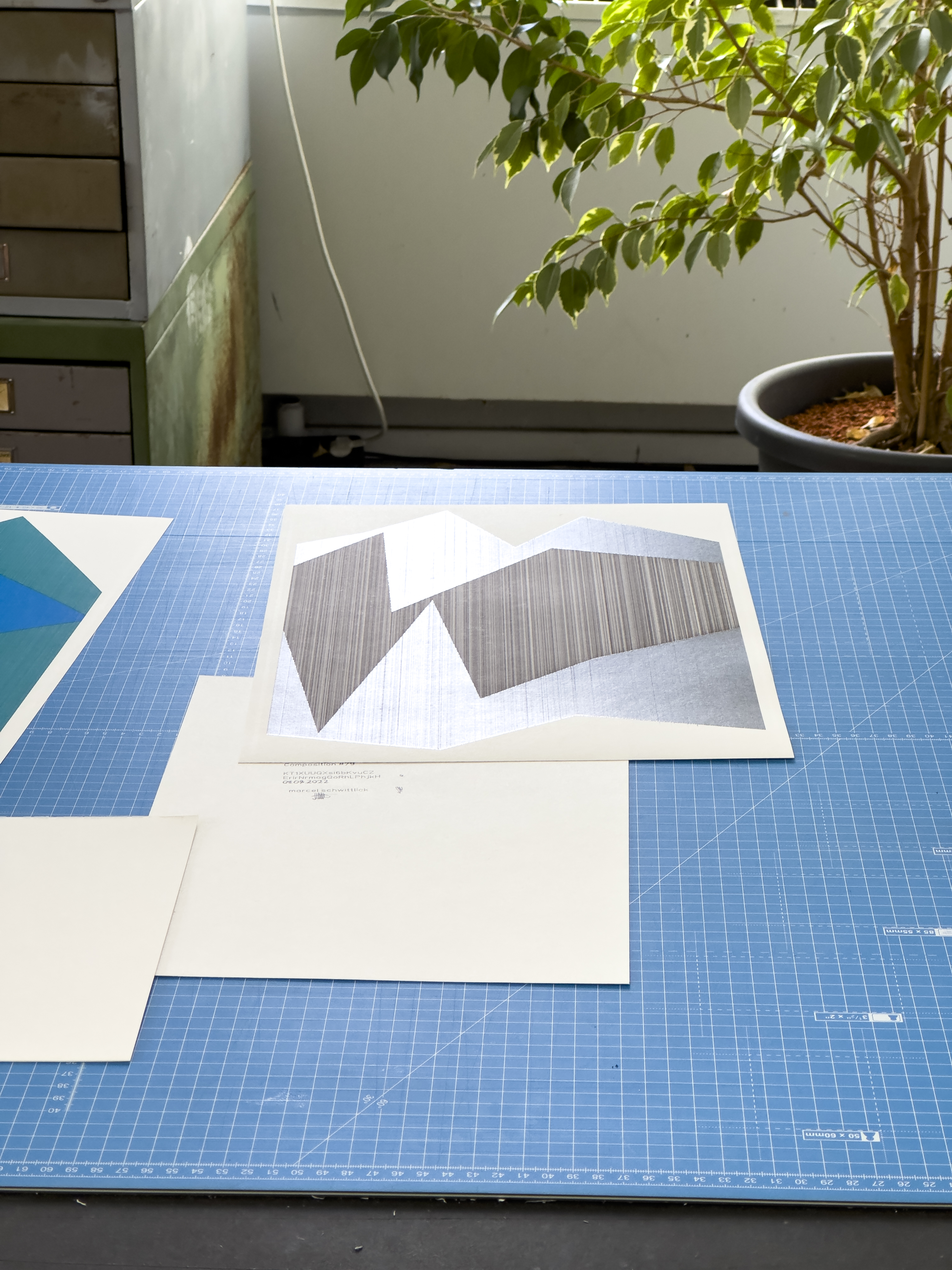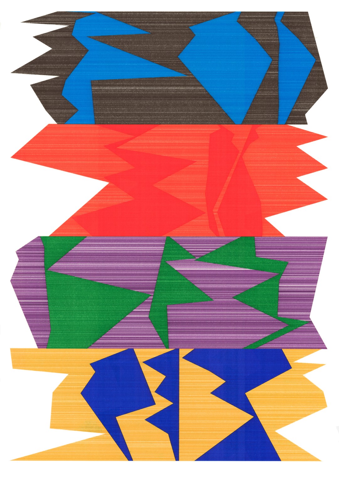 Vera Molnar, sankt victoire blues, collage, 50x50cm, 1997