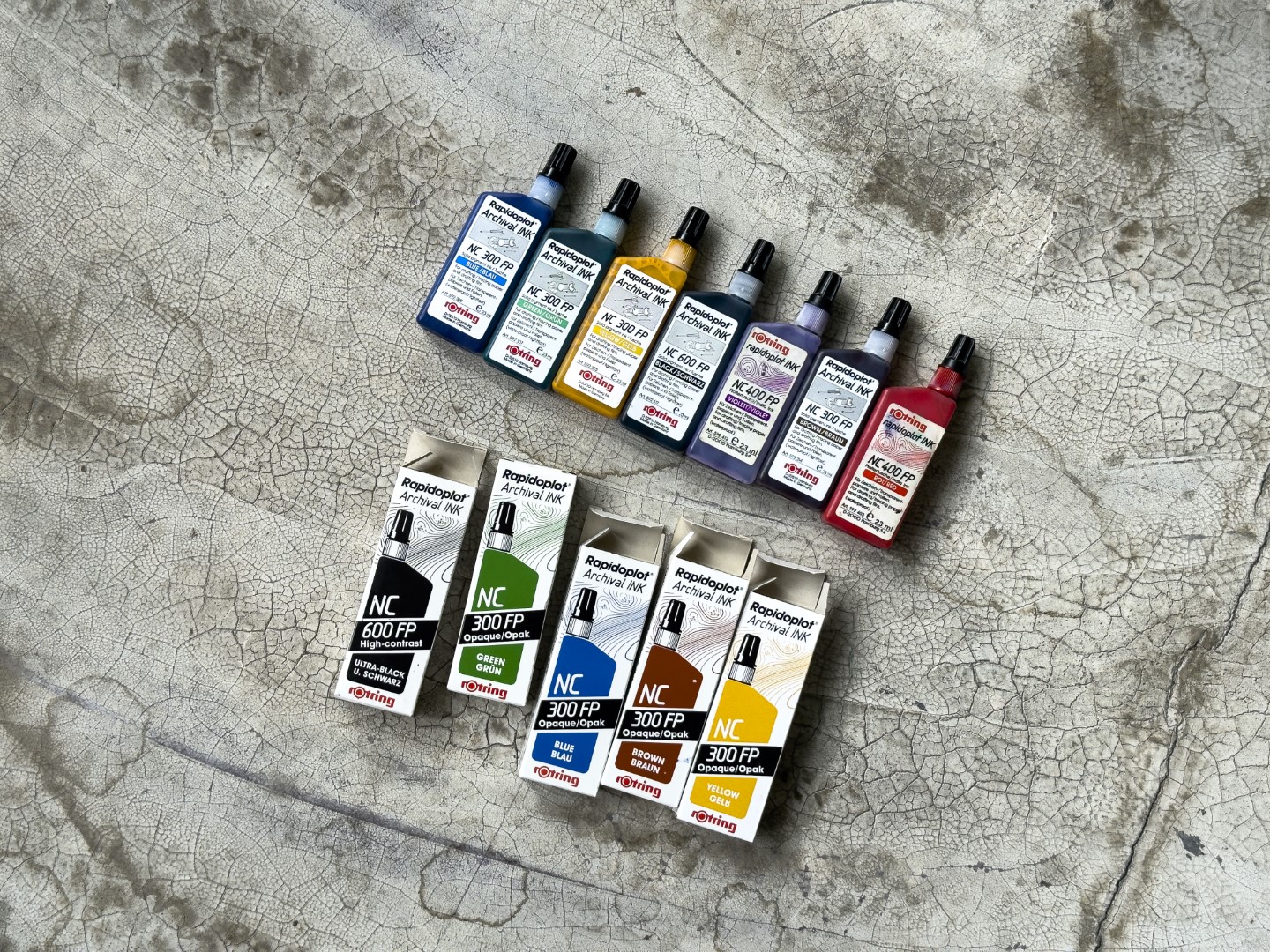 Vintage solid pigment archival inks for rapidoplot technical plotter pens