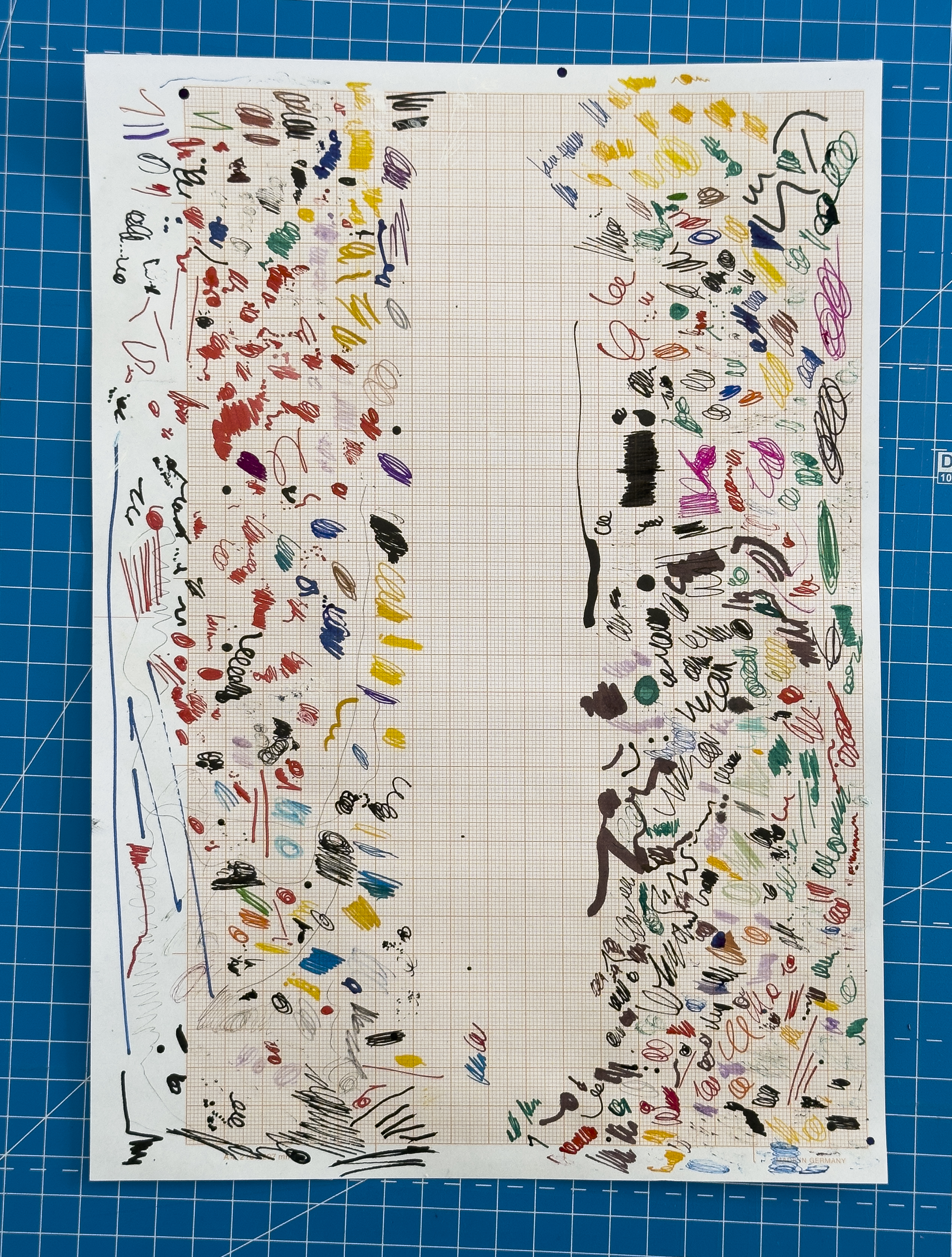 Various media have been used: Alcohol based copic inks, original 80s water-based felt-tip pens, newly produced water-based plotter pens, solid pigment inks, graphite (pencil), ballpoint pens