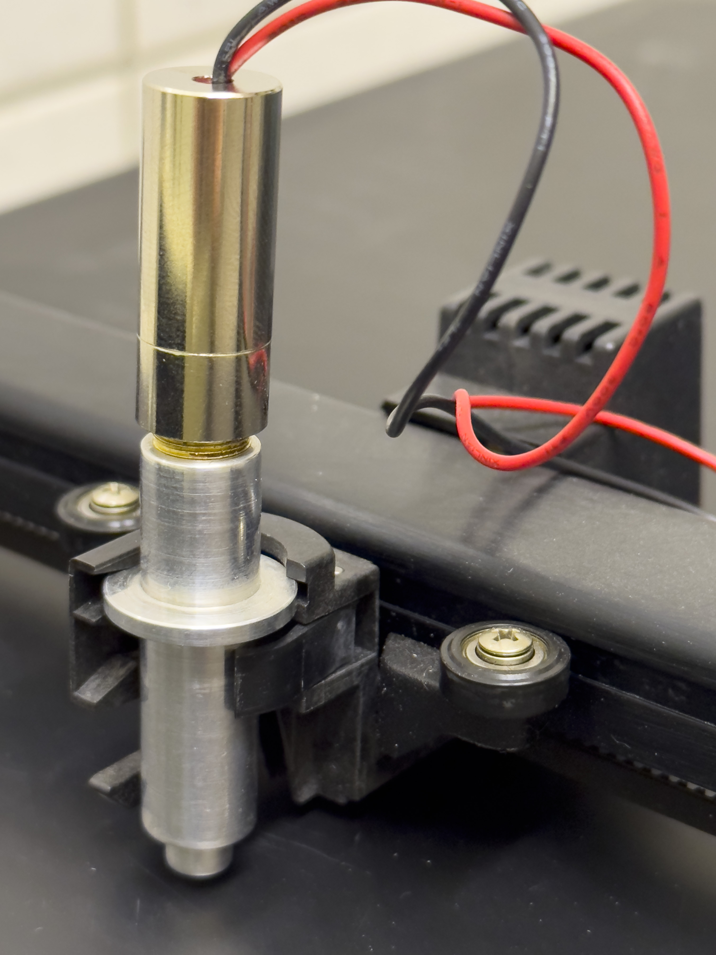 A typical 5v laser attached to a pen adapter fitting a plotter