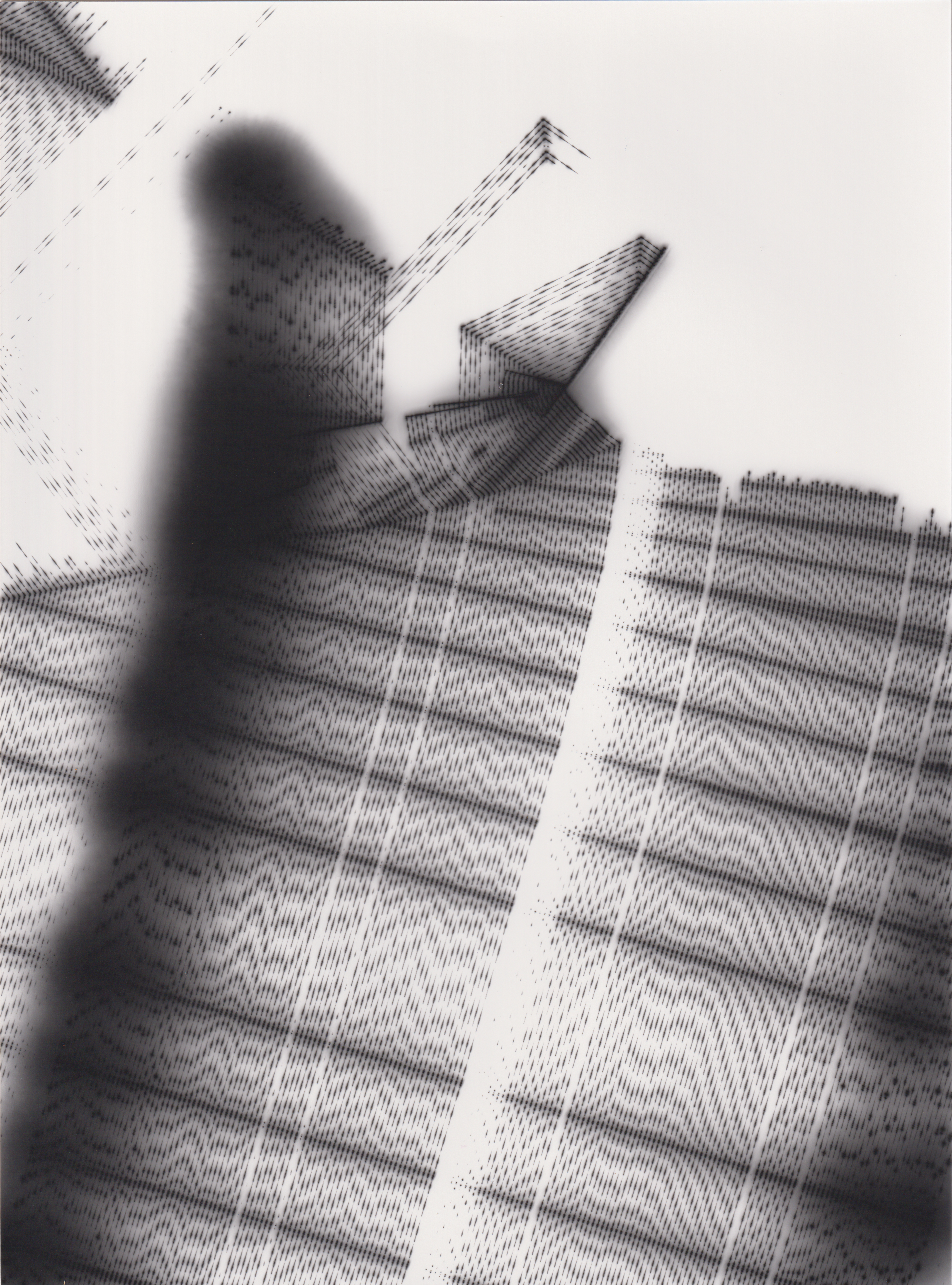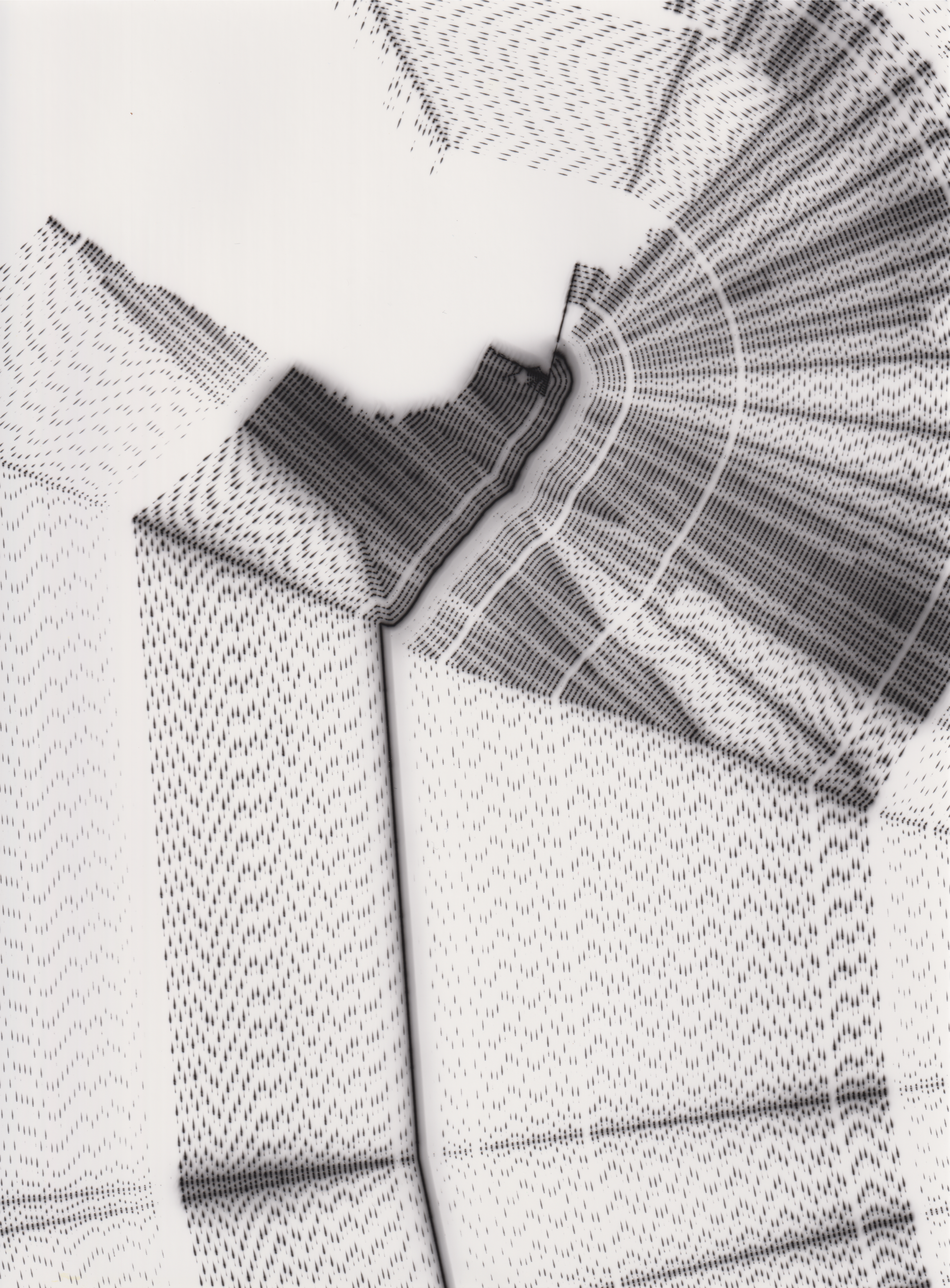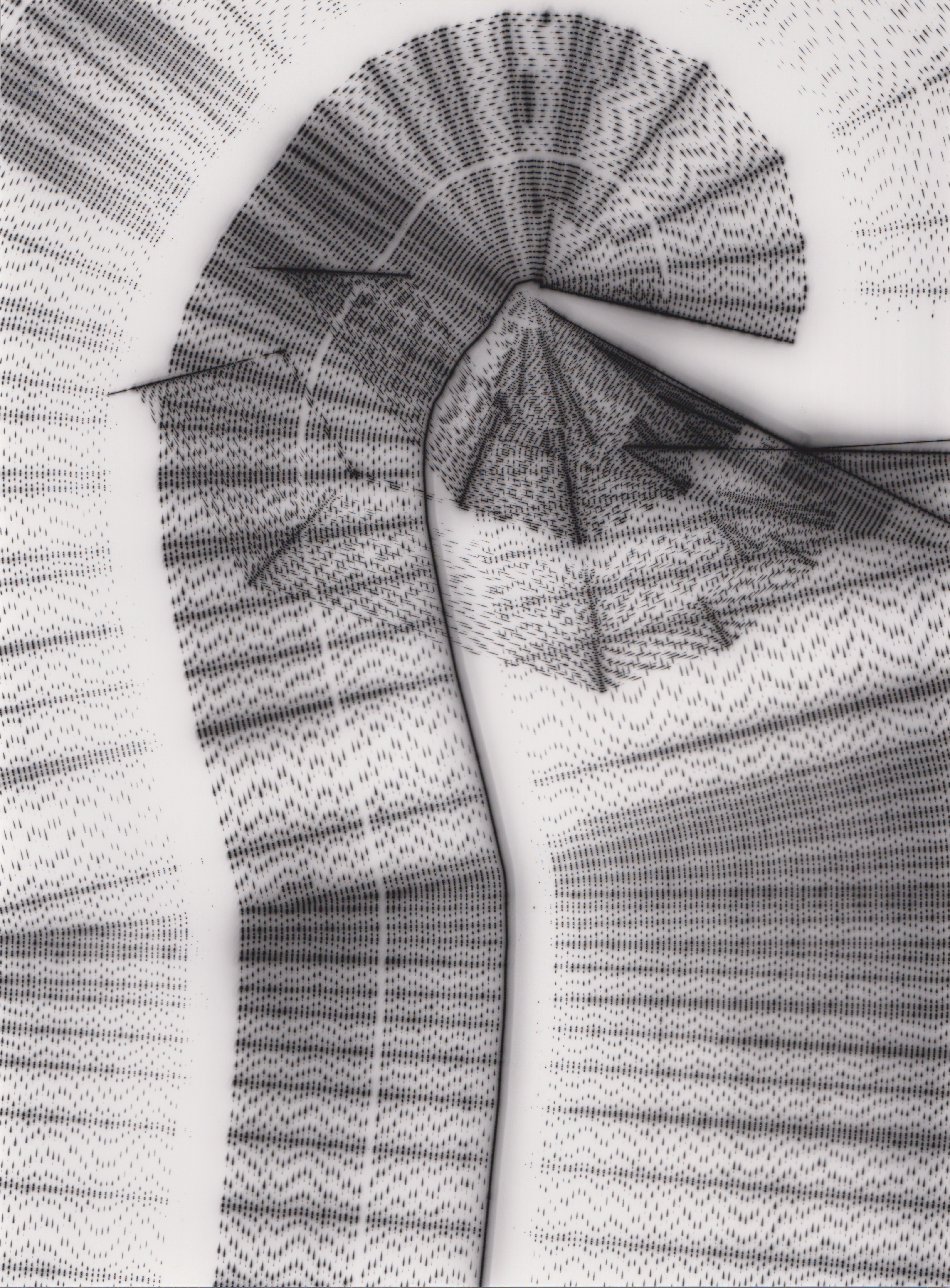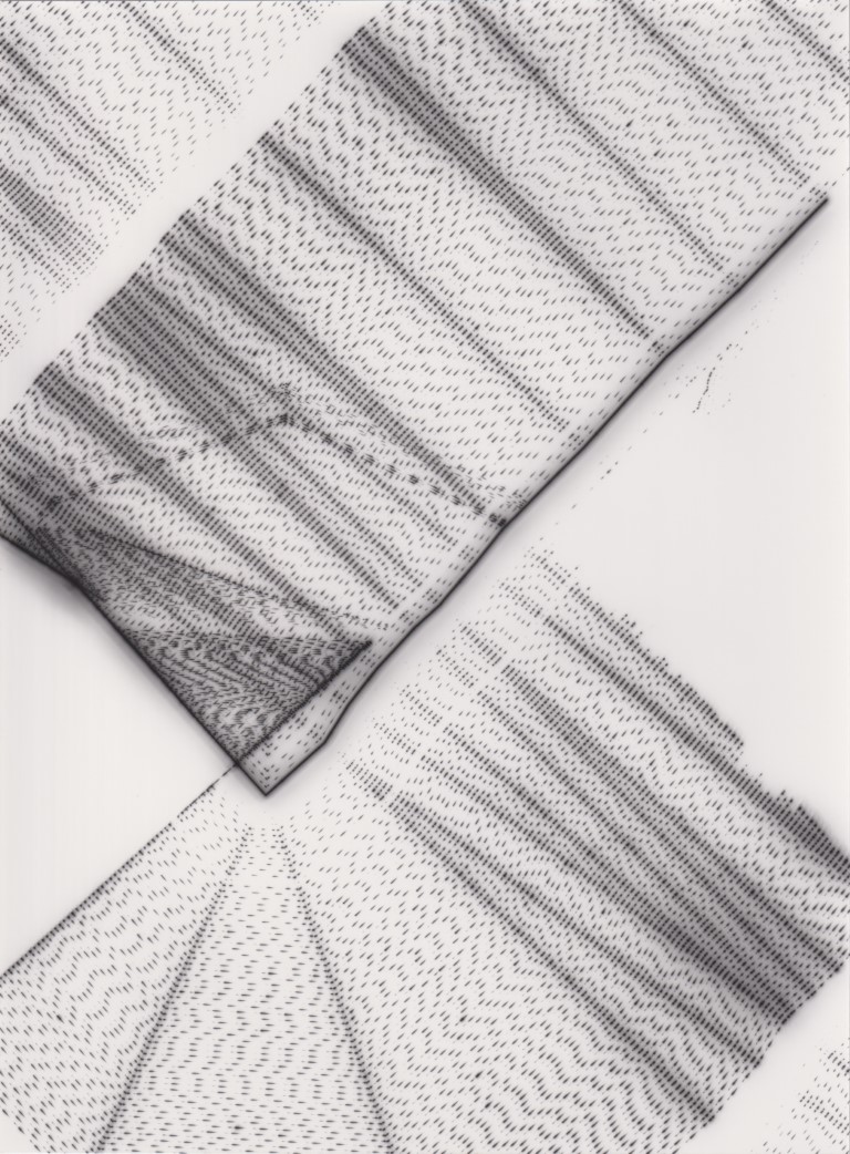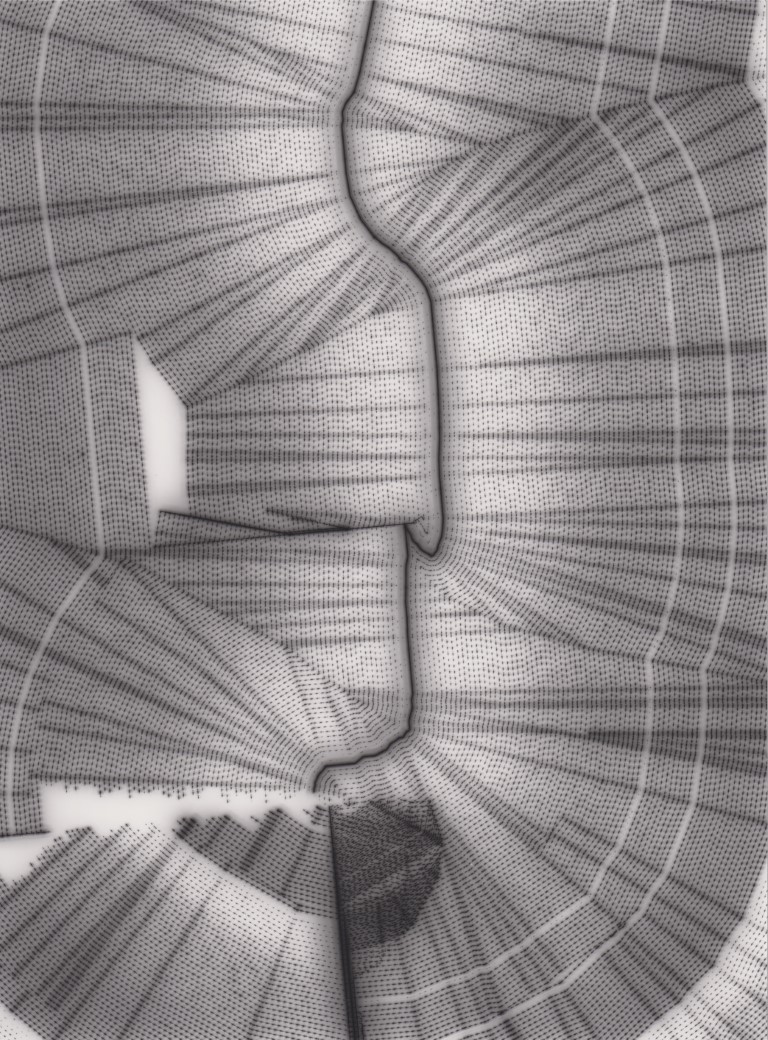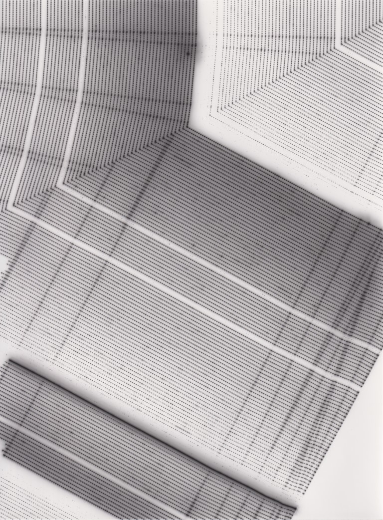 TLDR; These 100 pieces were created by plotting with laser pen on photo paper in a darkroom setting.