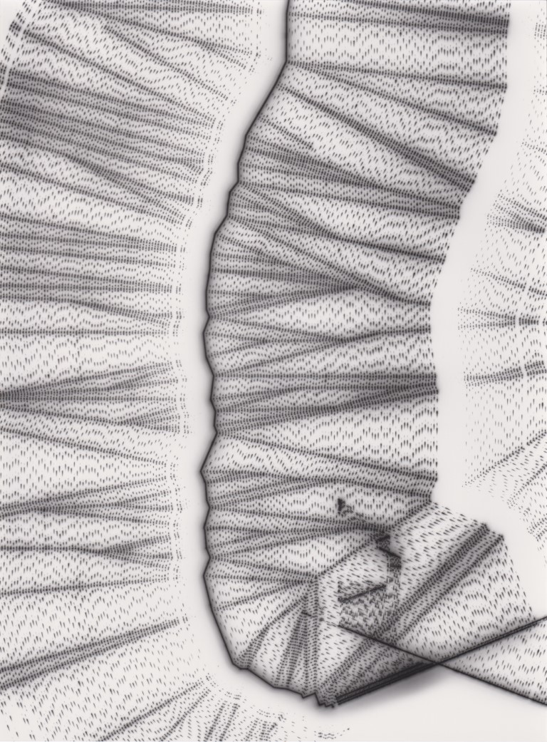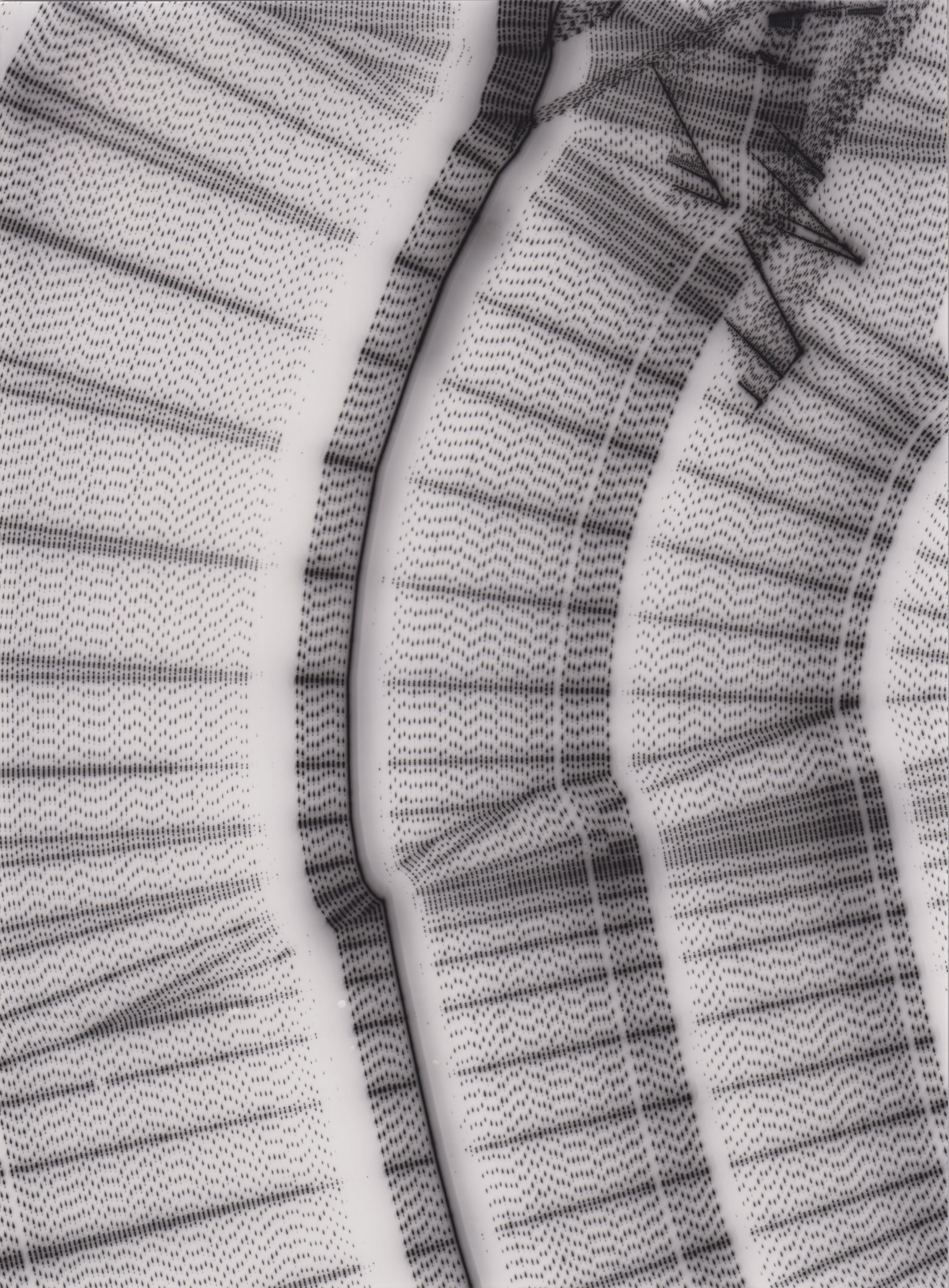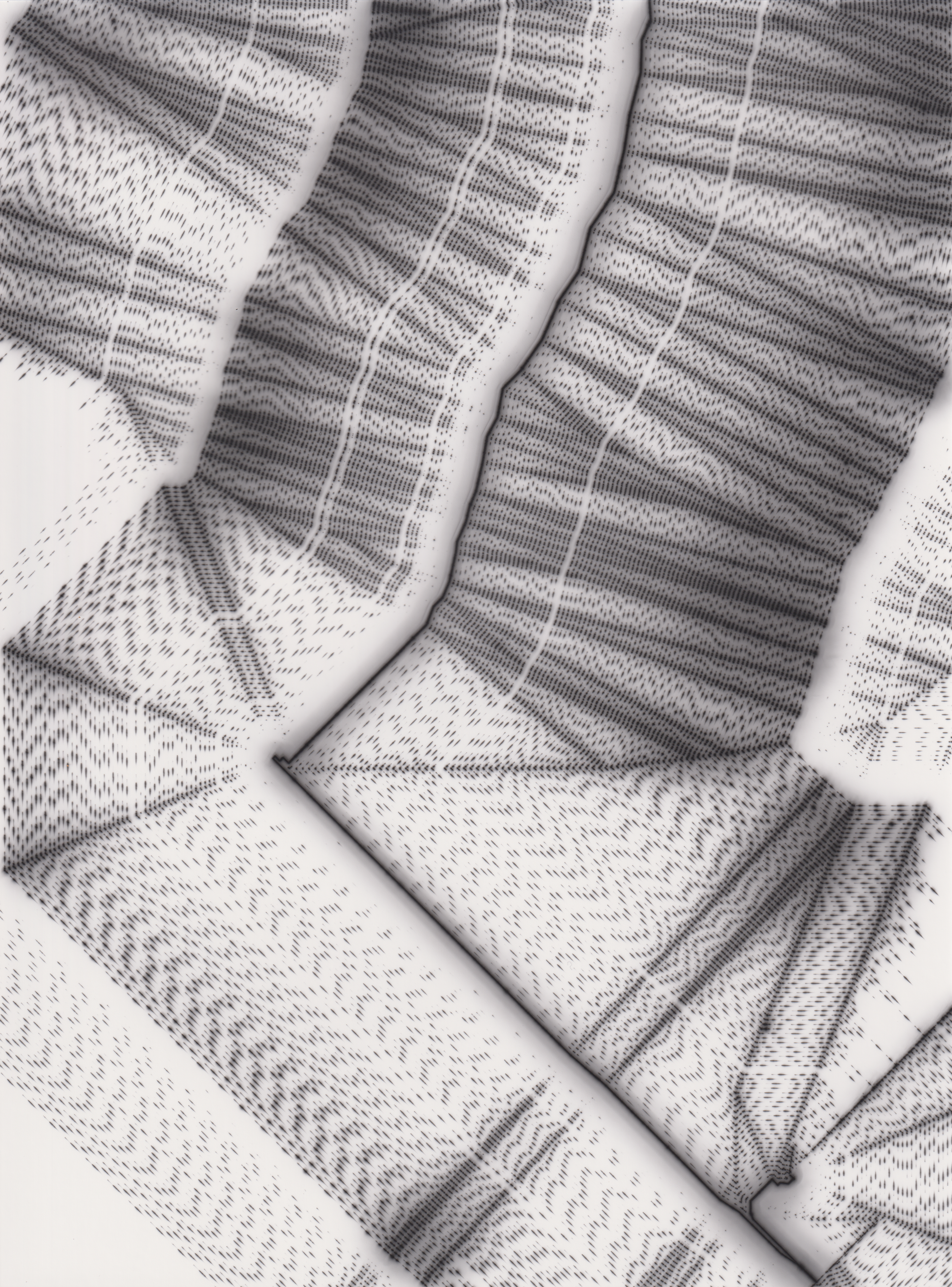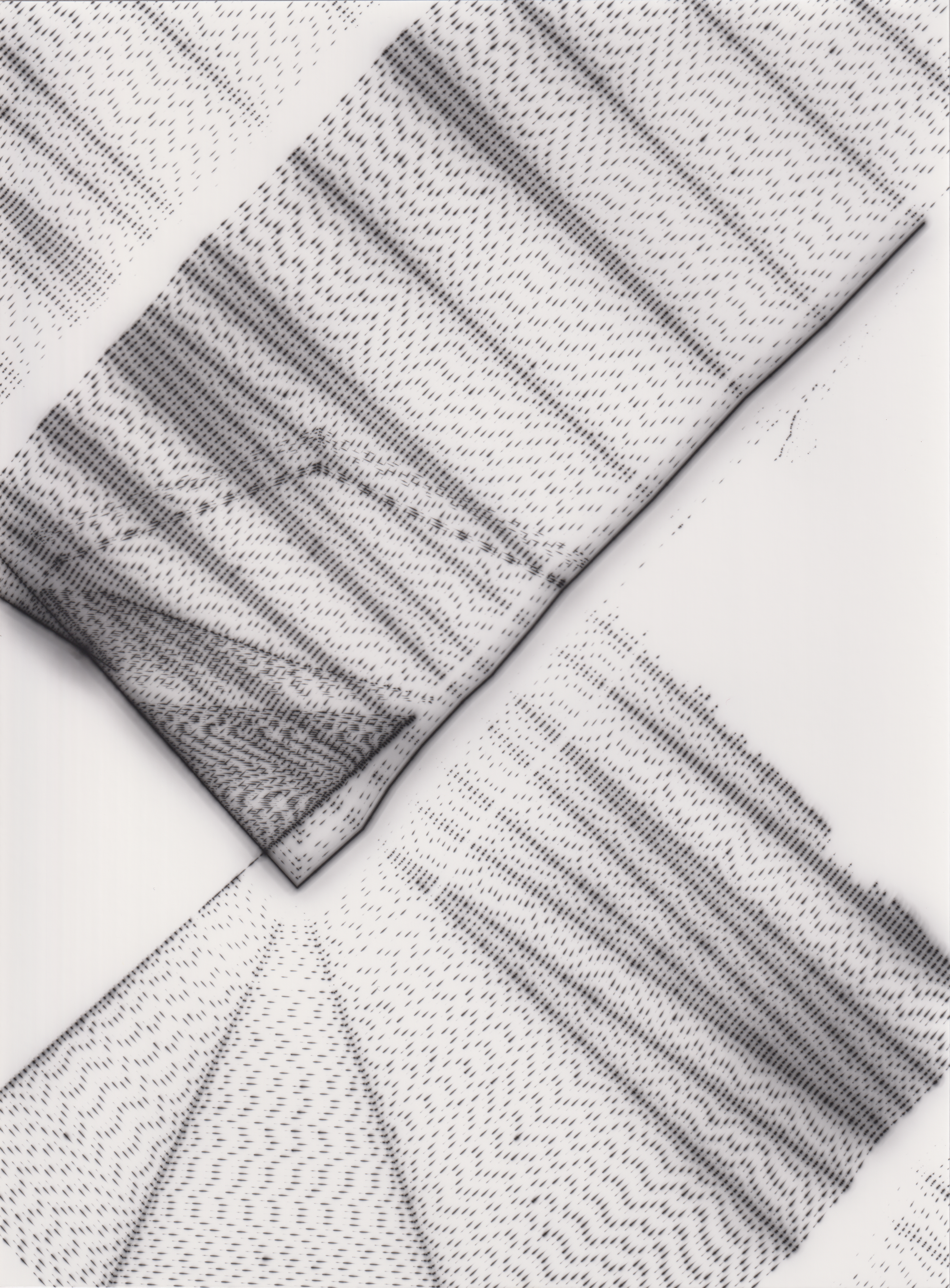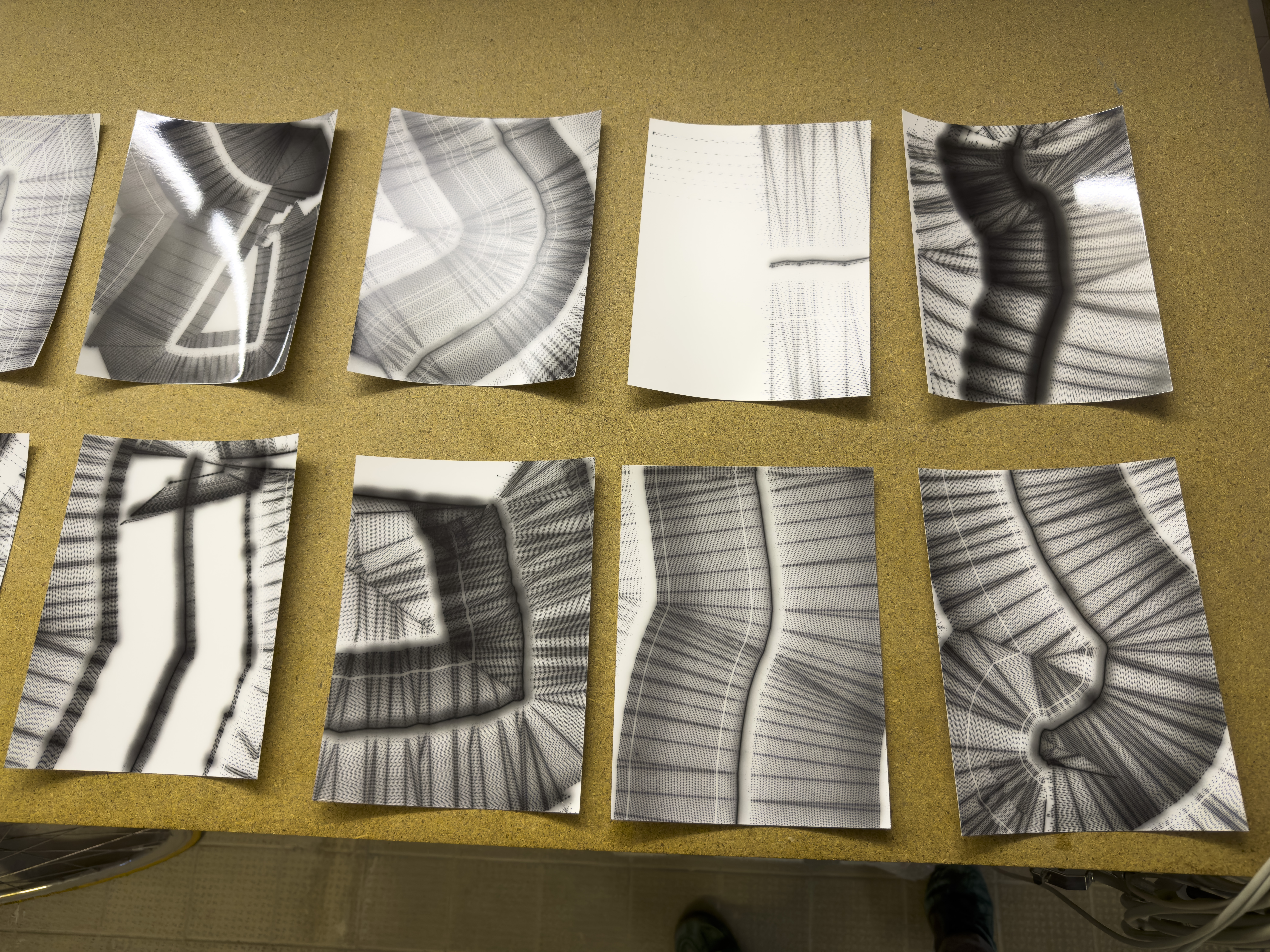 TLDR; These 100 pieces were created by plotting with laser pen on photo paper in a darkroom setting.