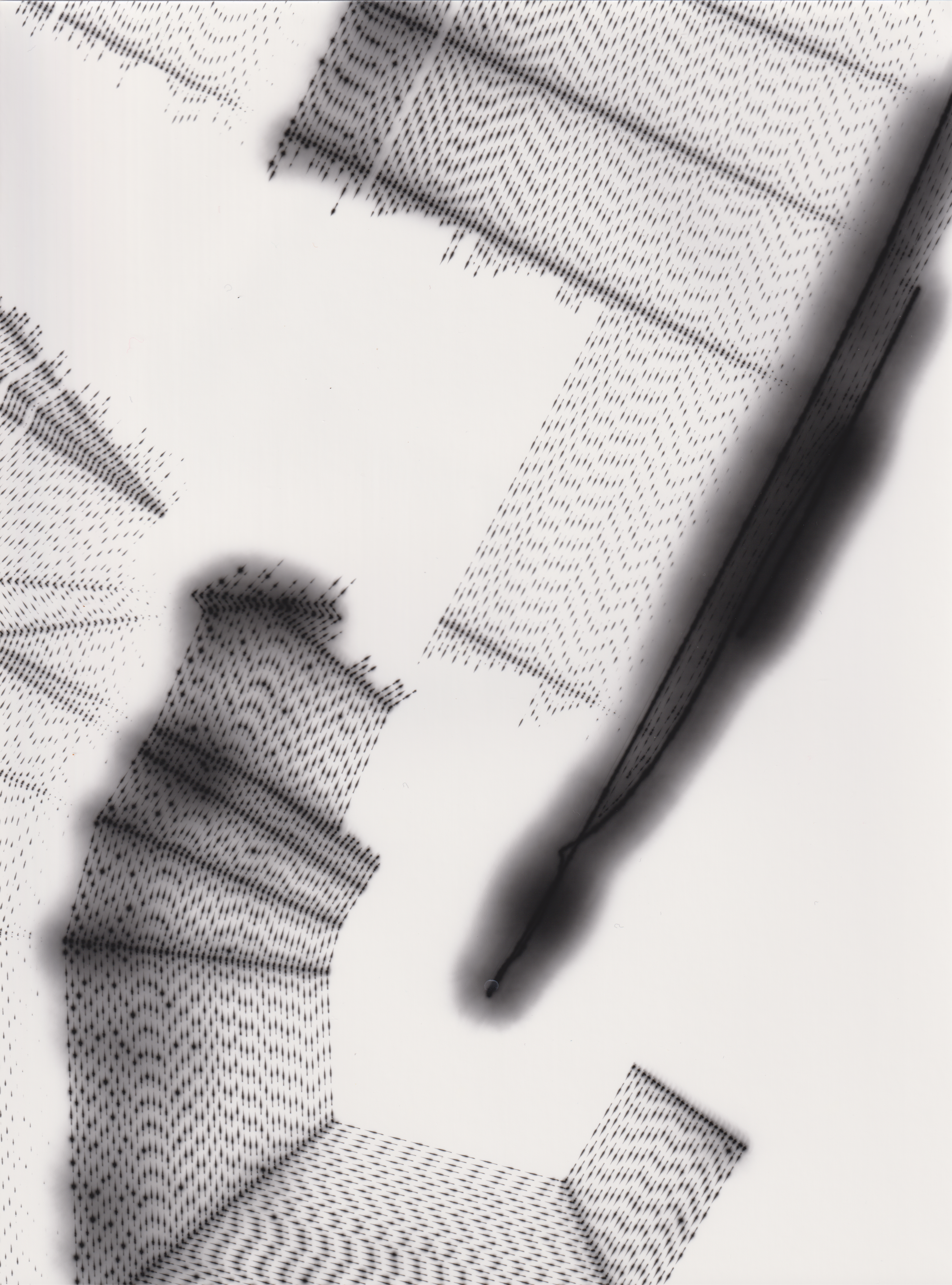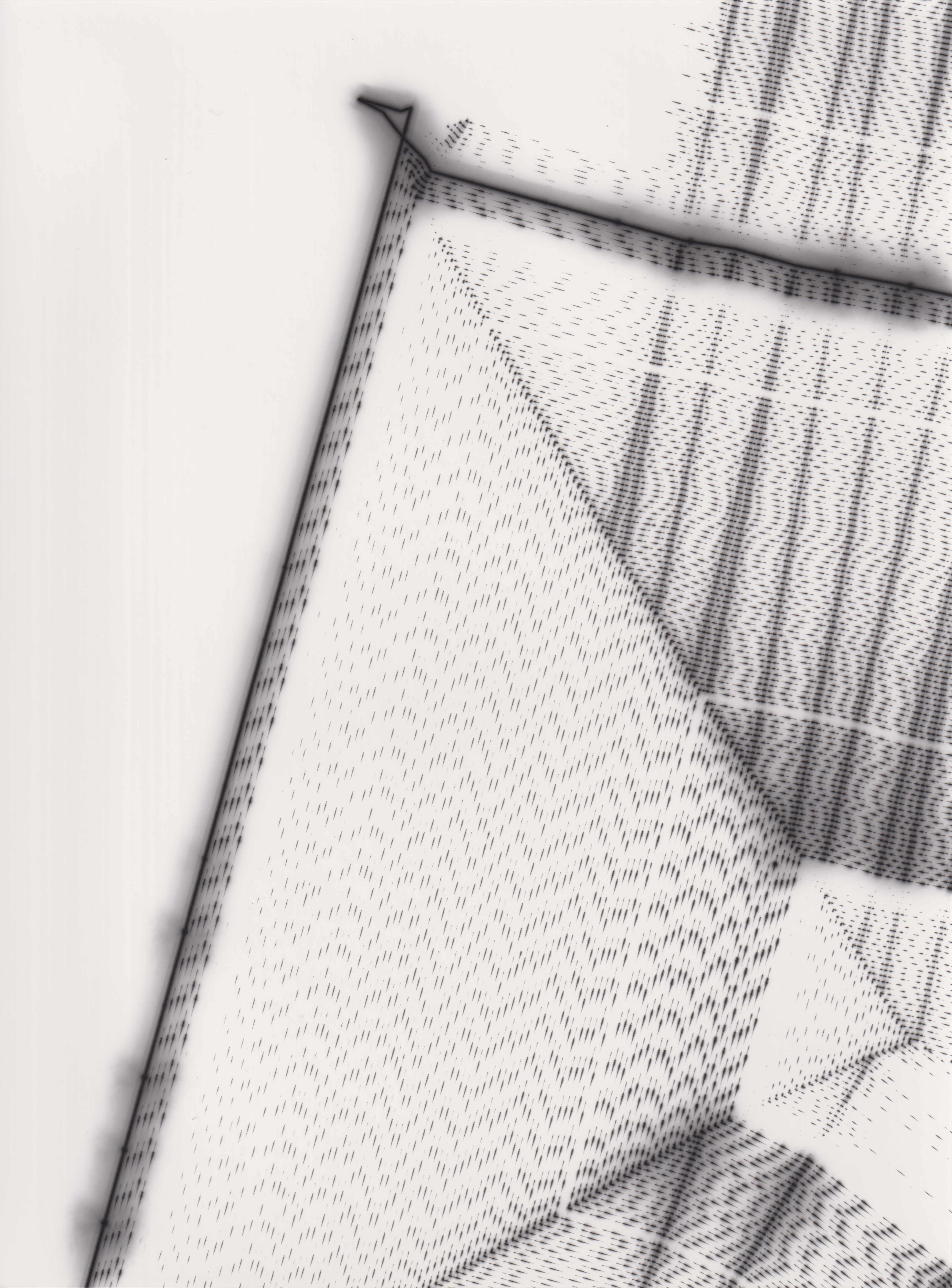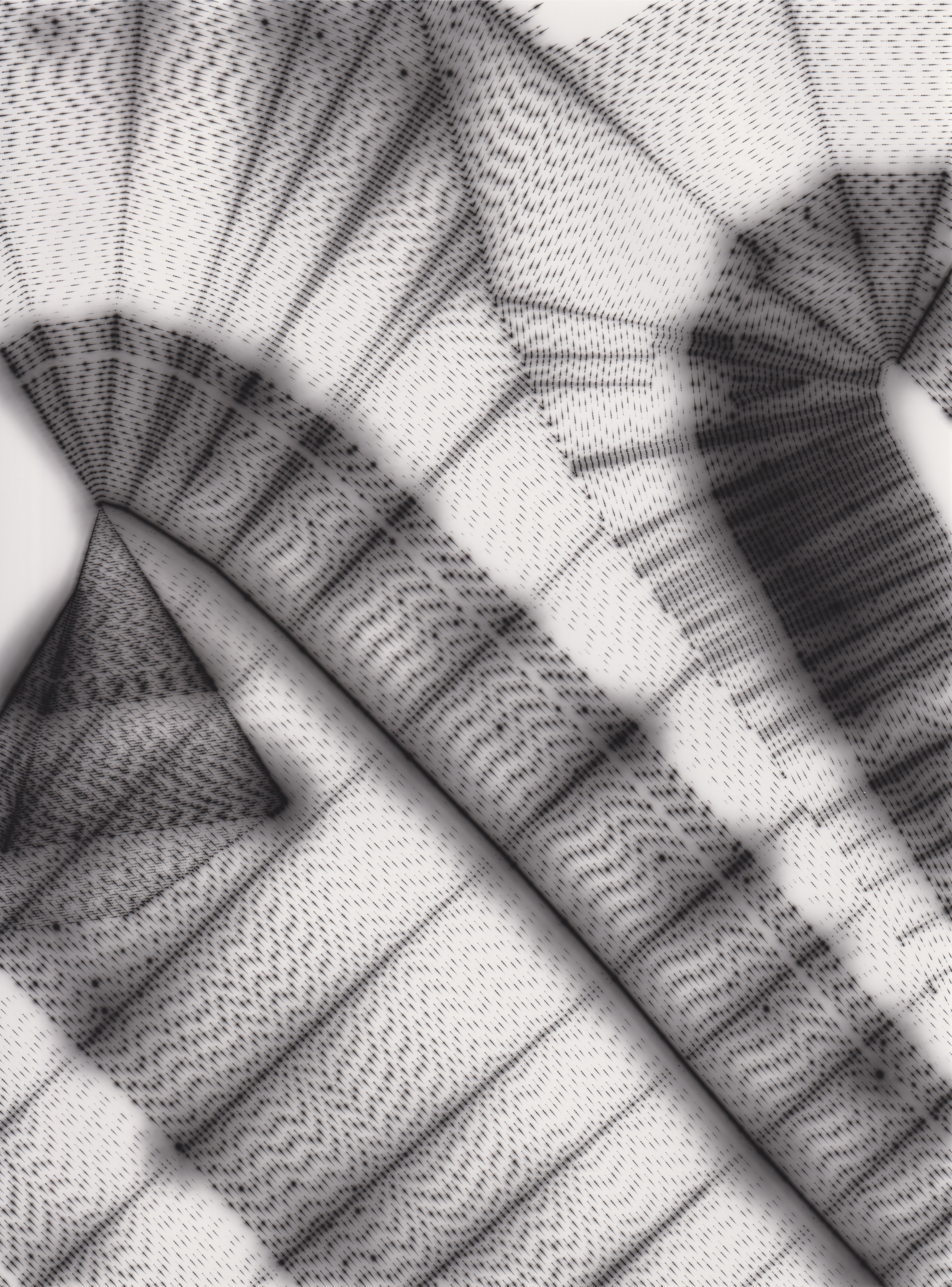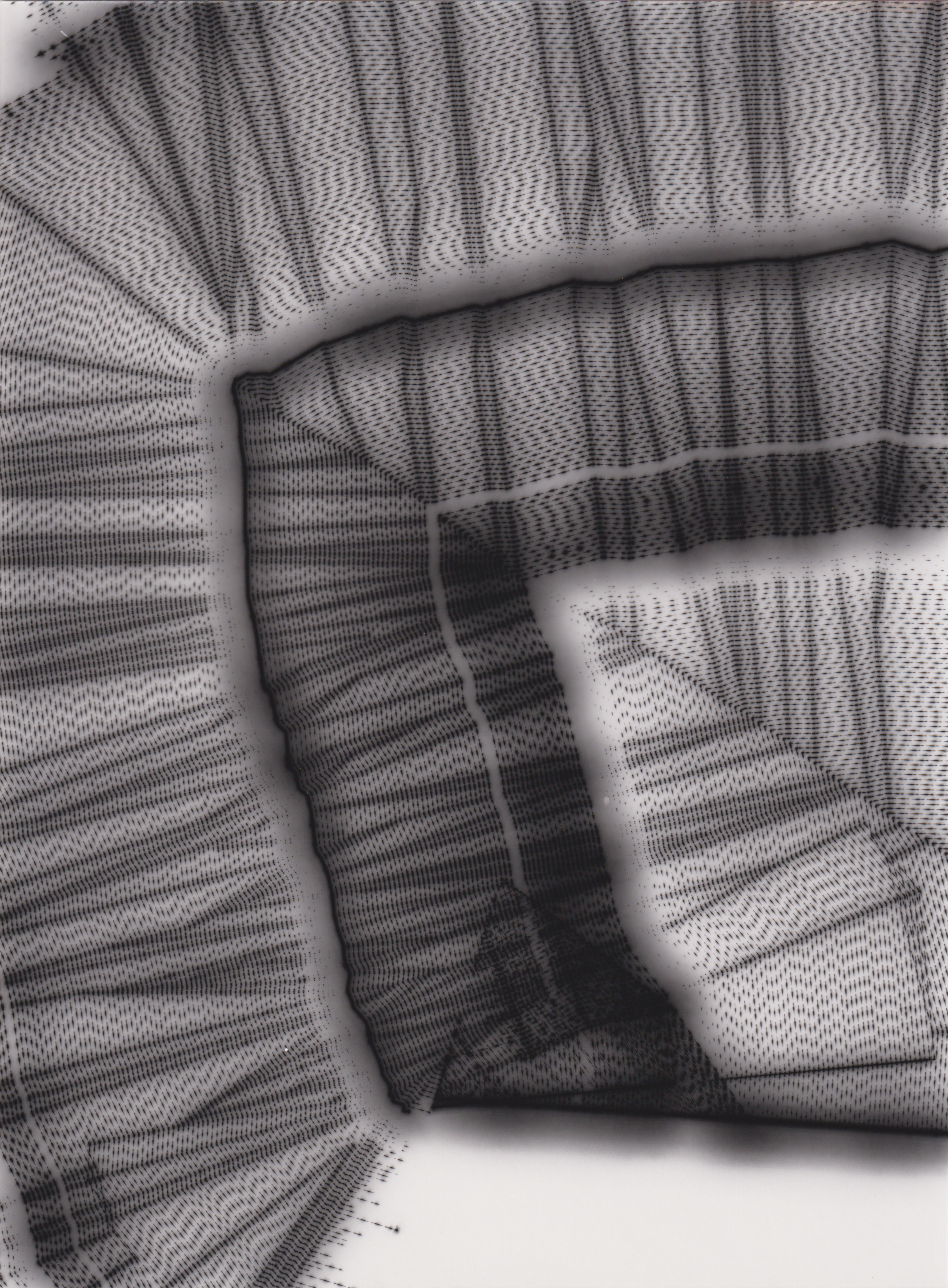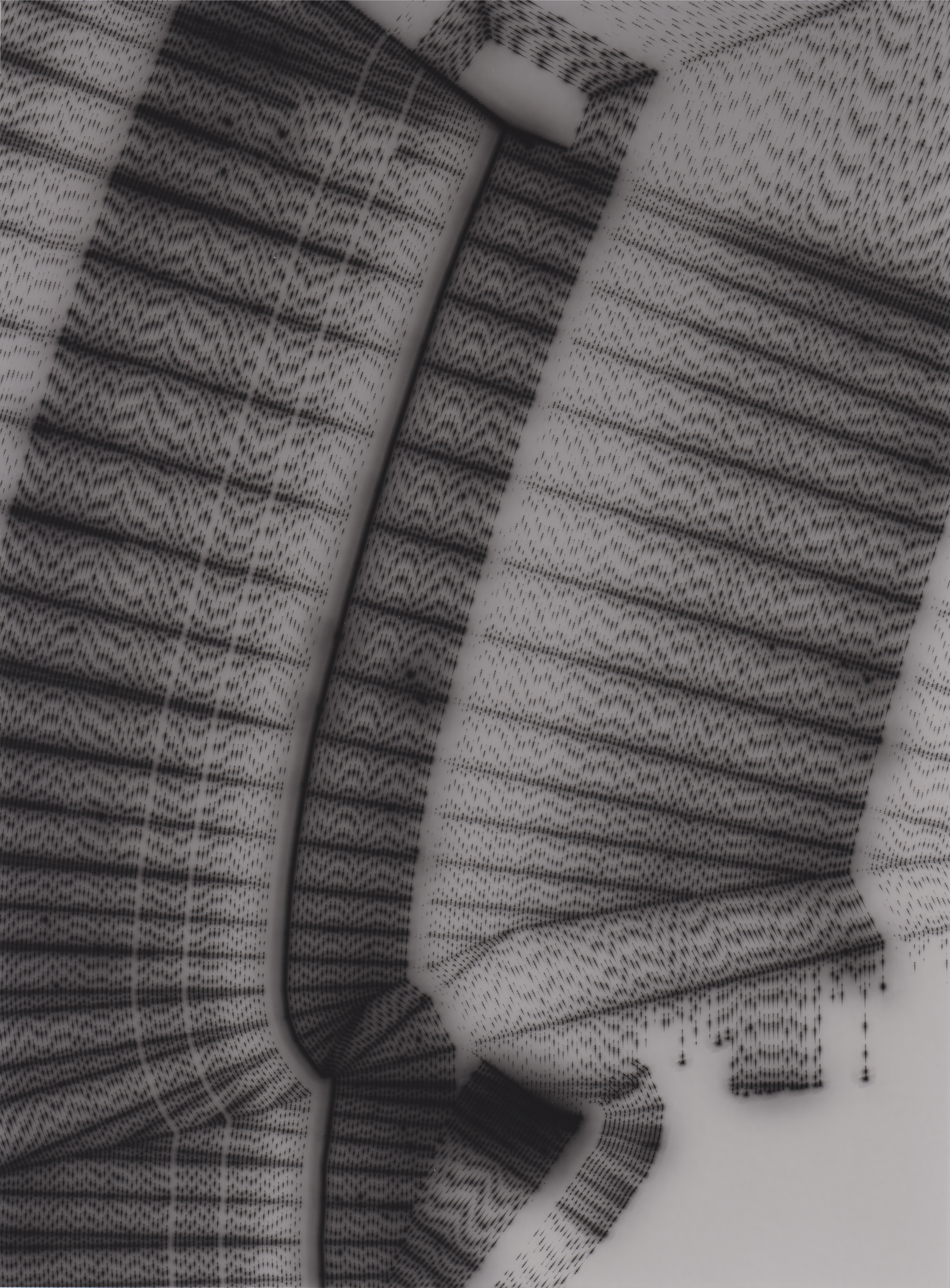 TLDR; These 100 pieces were created by plotting with laser pen on photo paper in a darkroom setting.