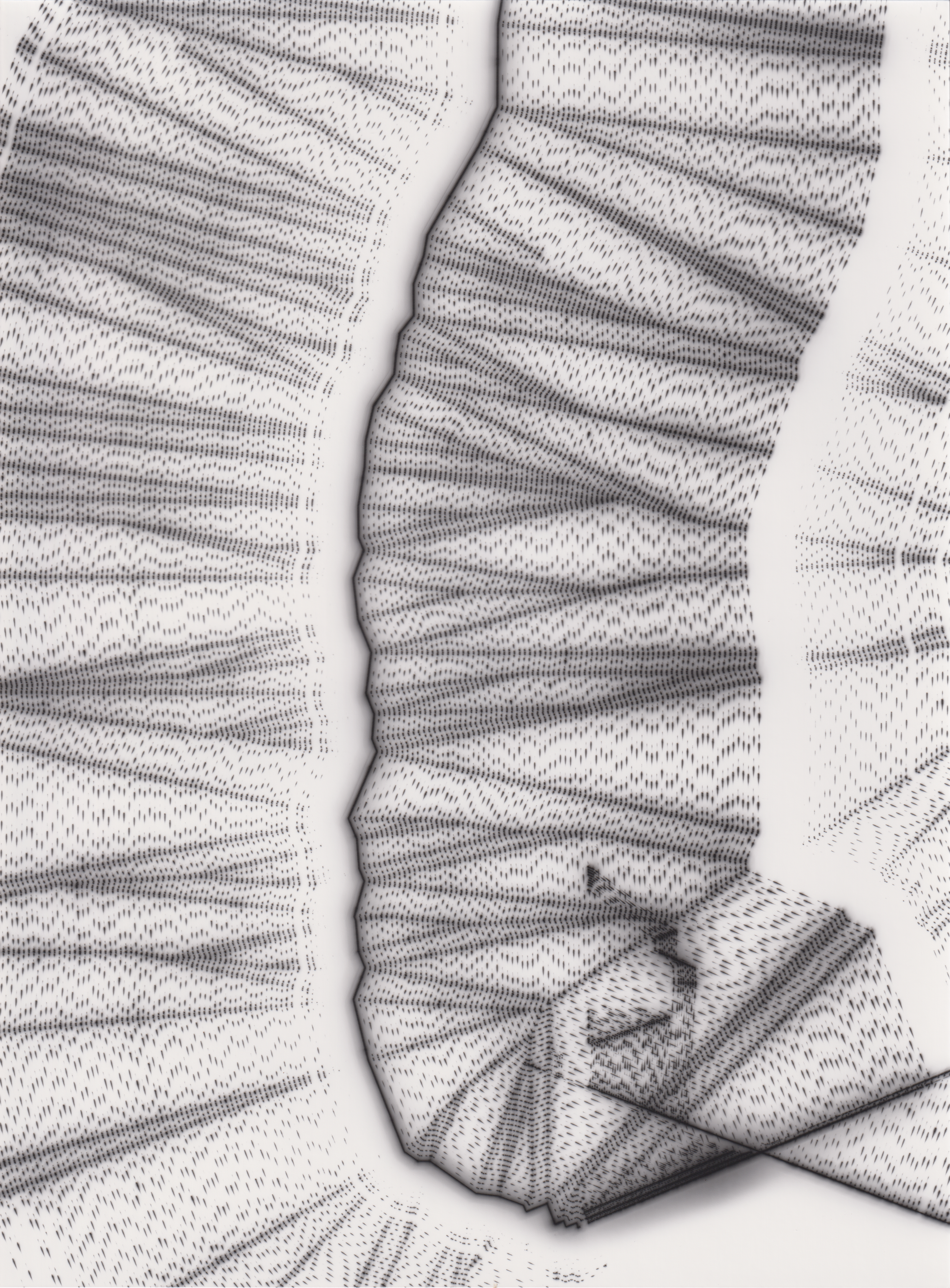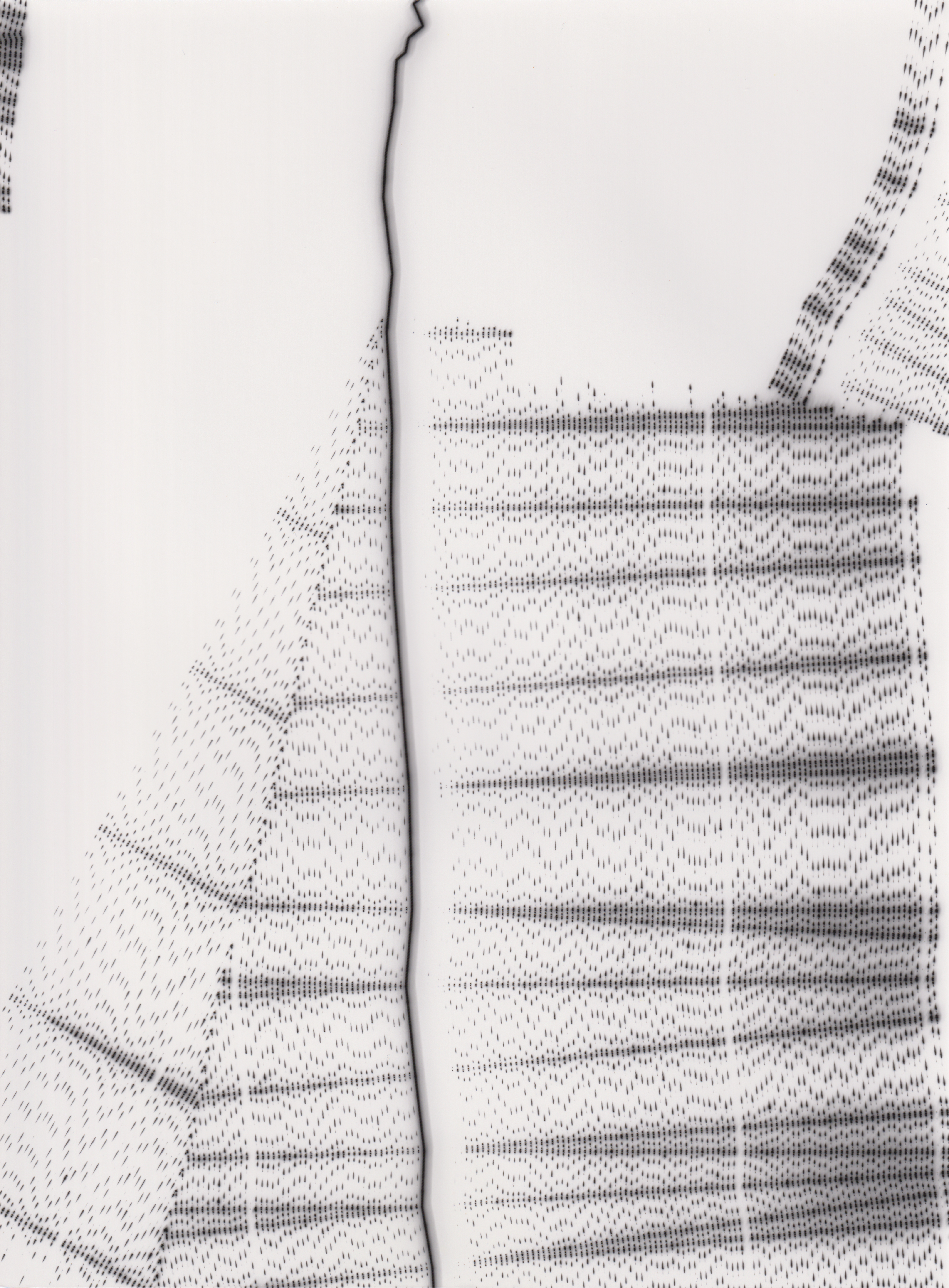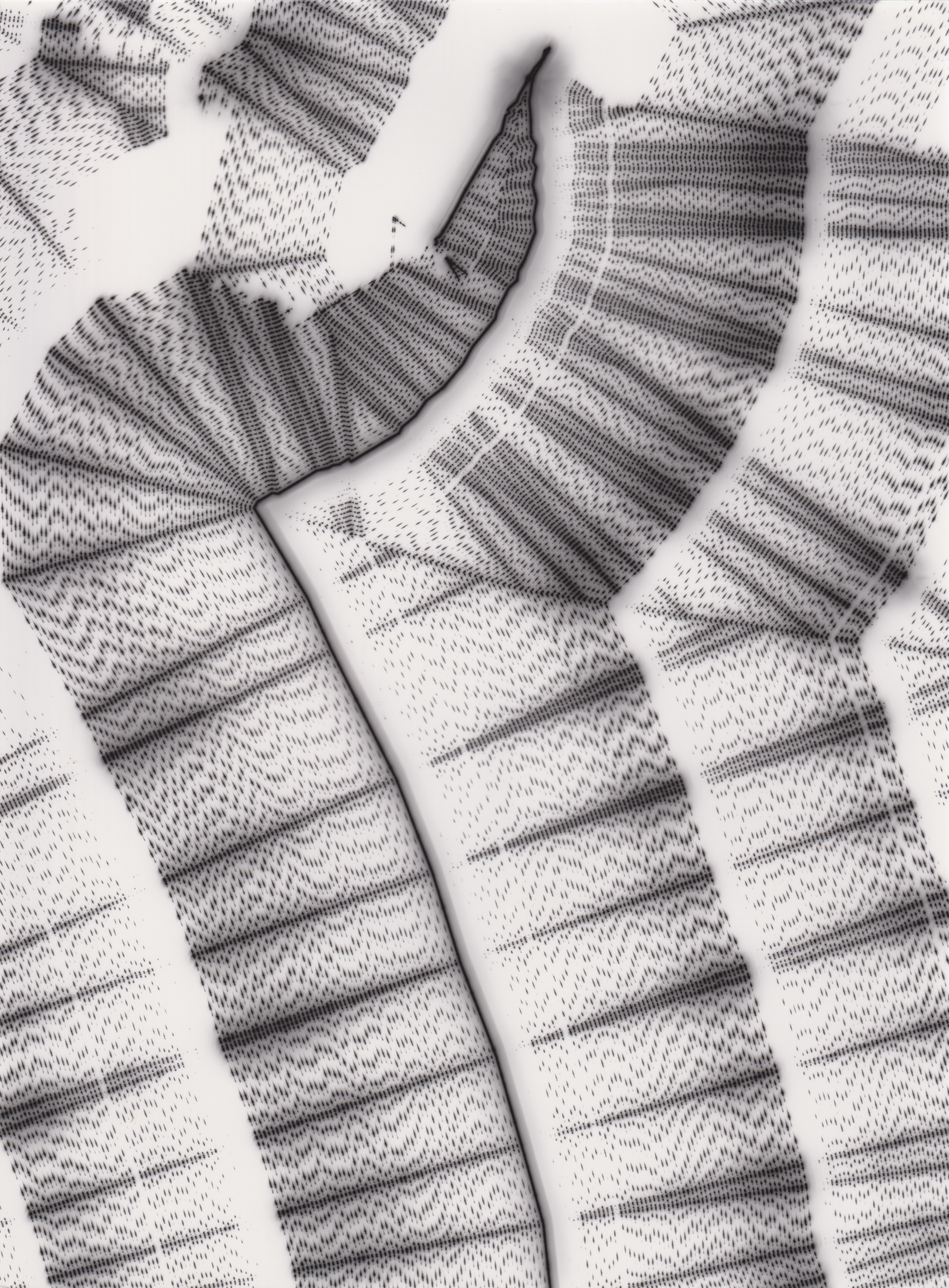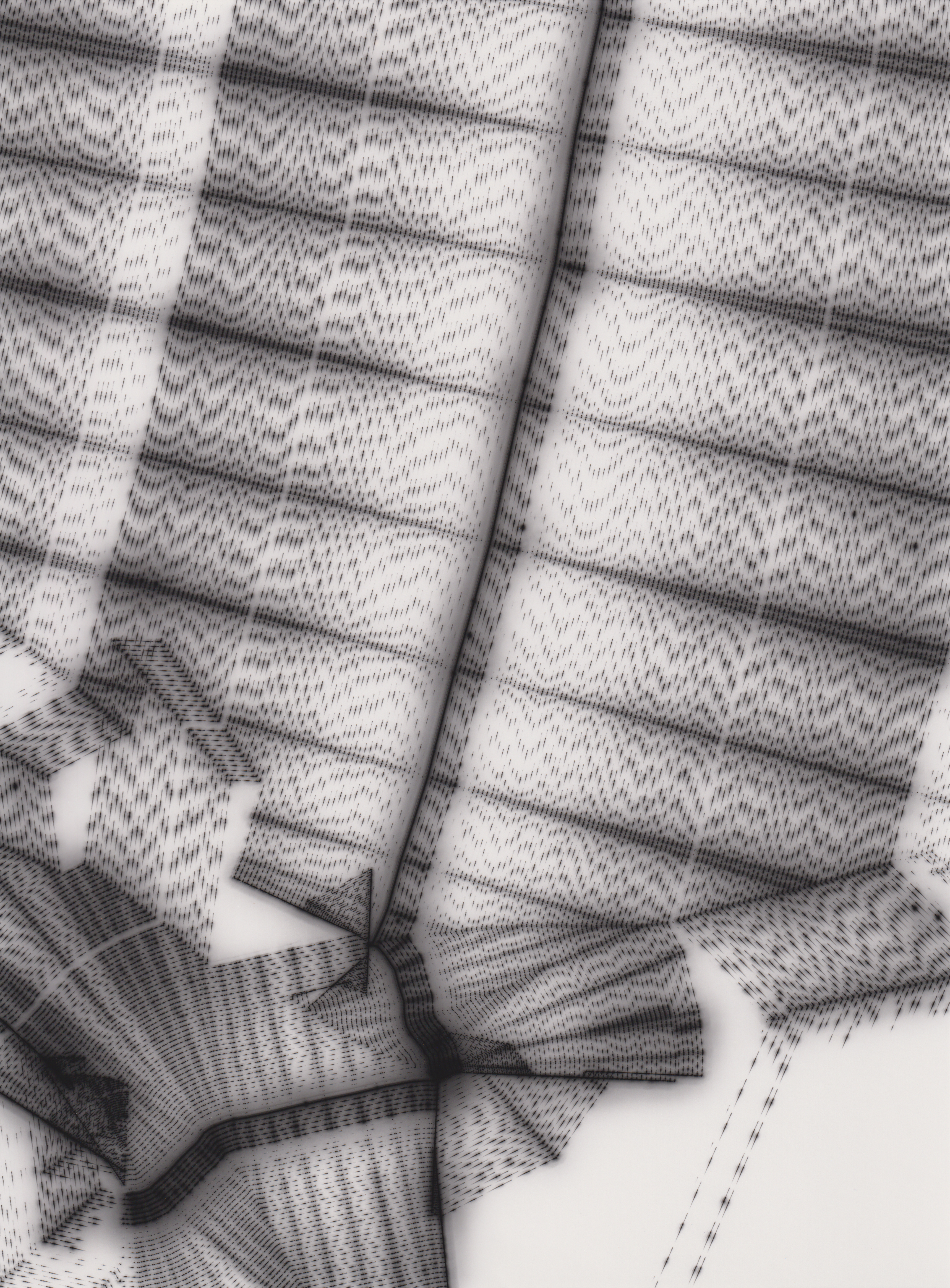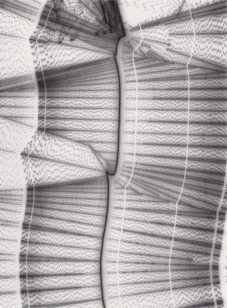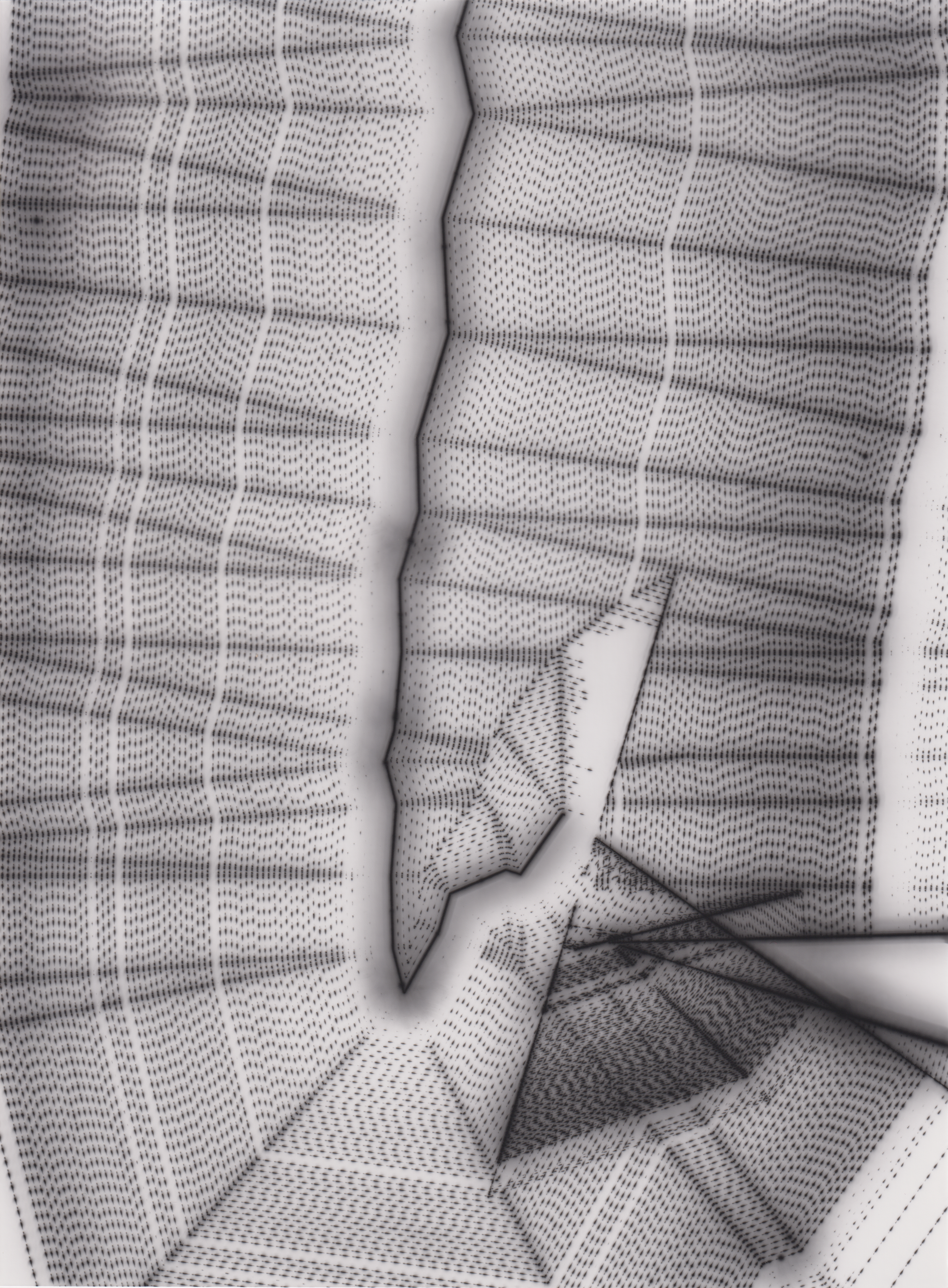 TLDR; These 100 pieces were created by plotting with laser pen on photo paper in a darkroom setting.