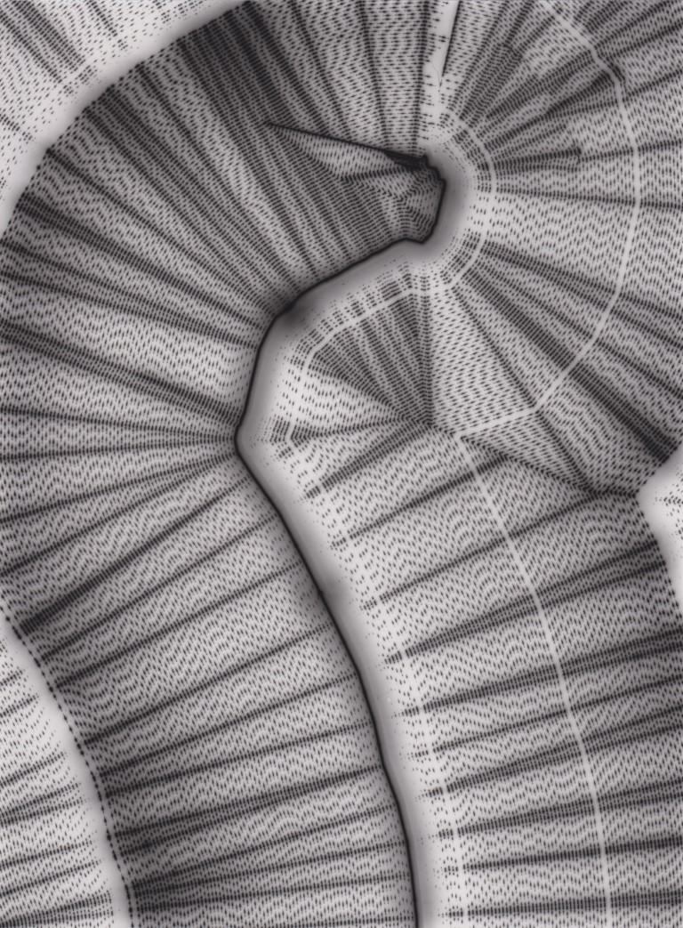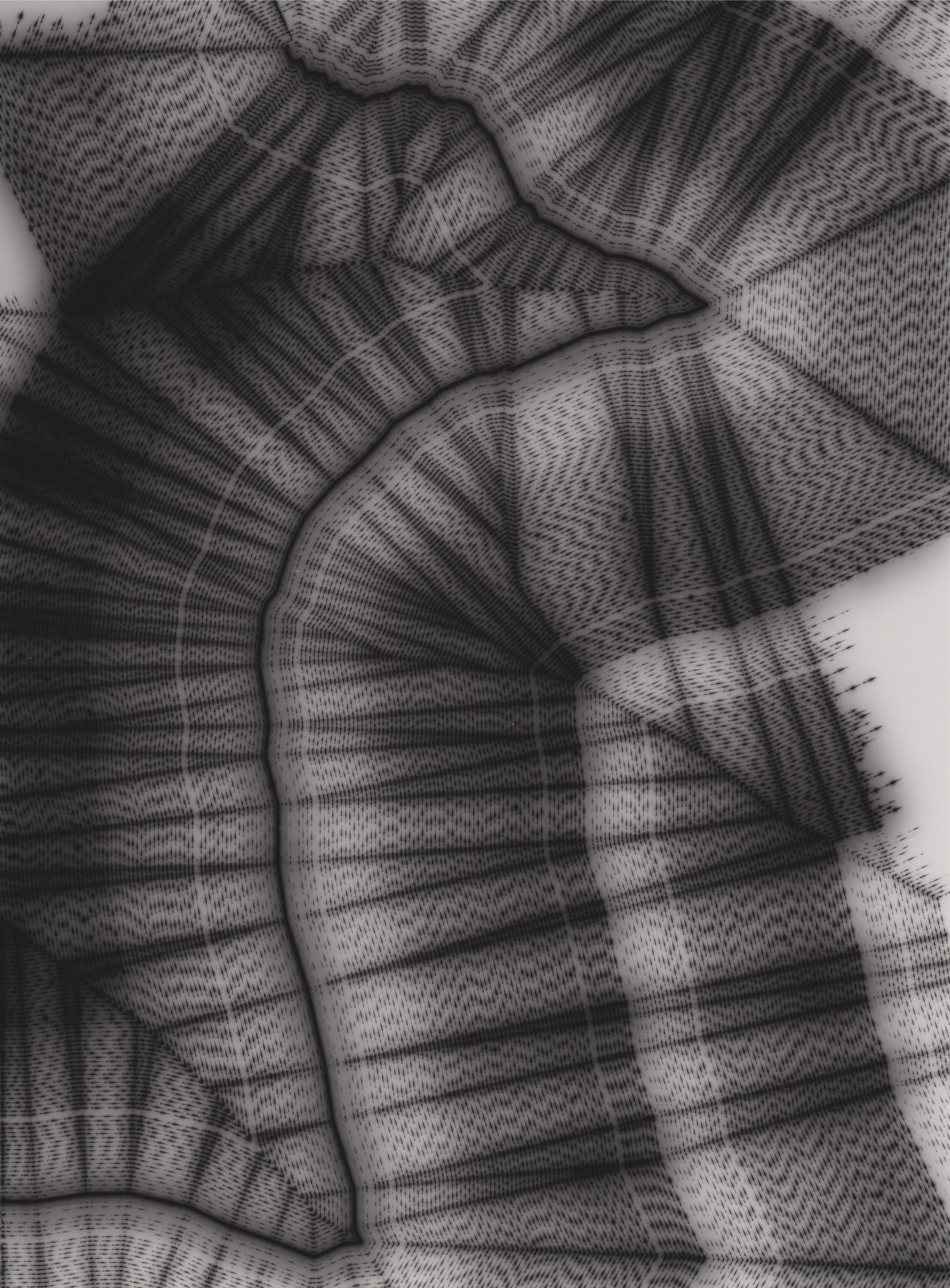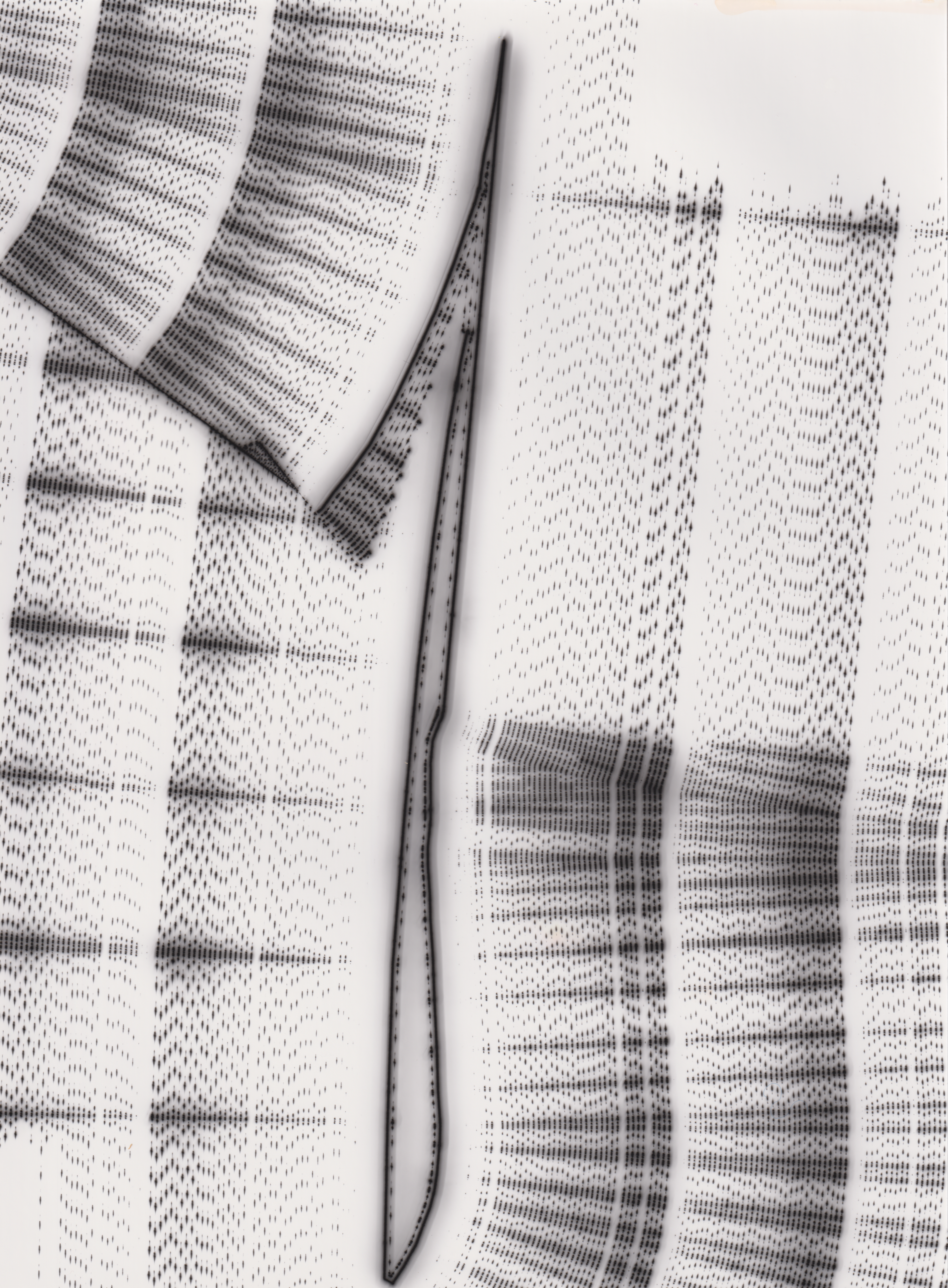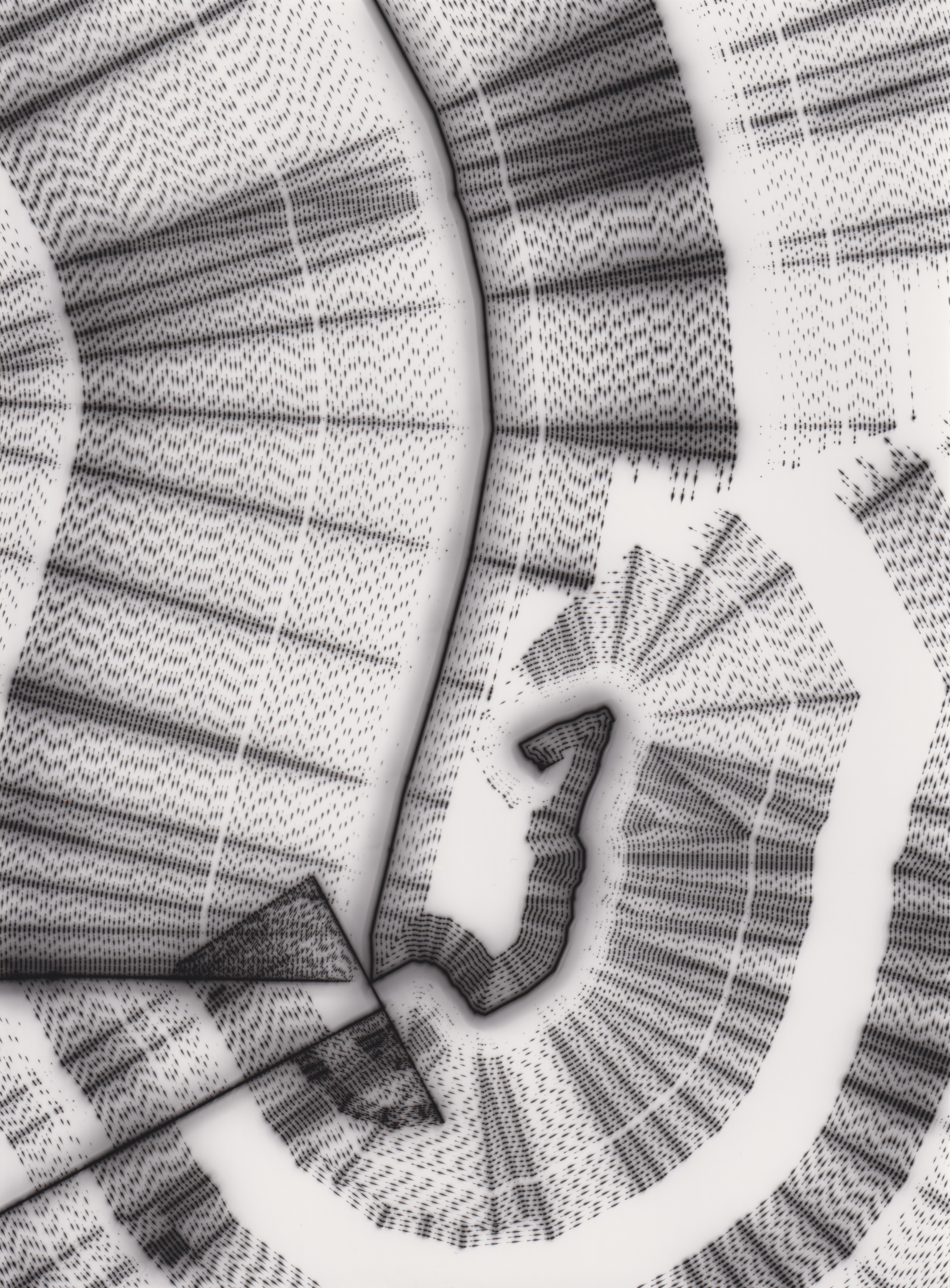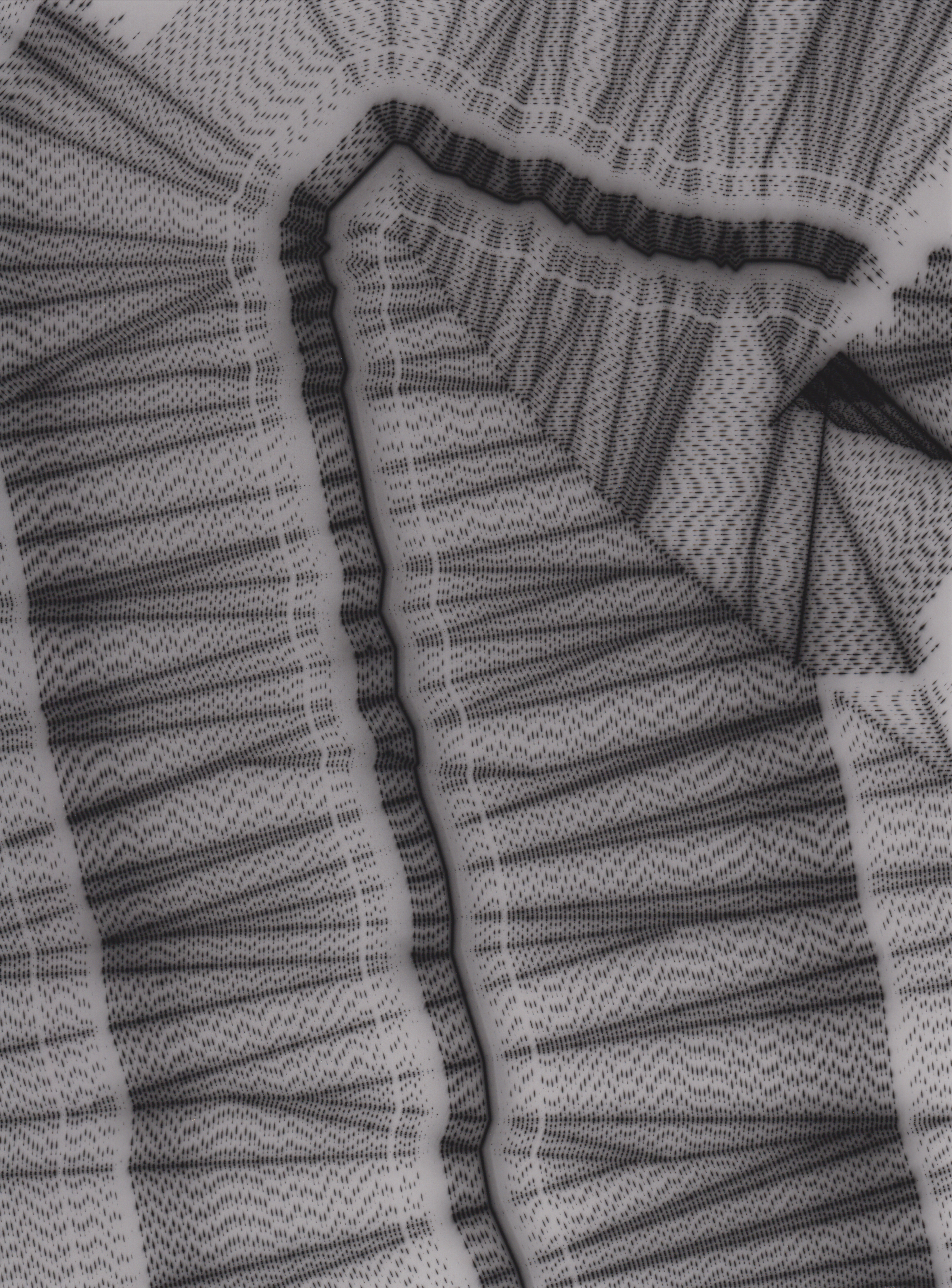 TLDR; These 100 pieces were created by plotting with laser pen on photo paper in a darkroom setting.