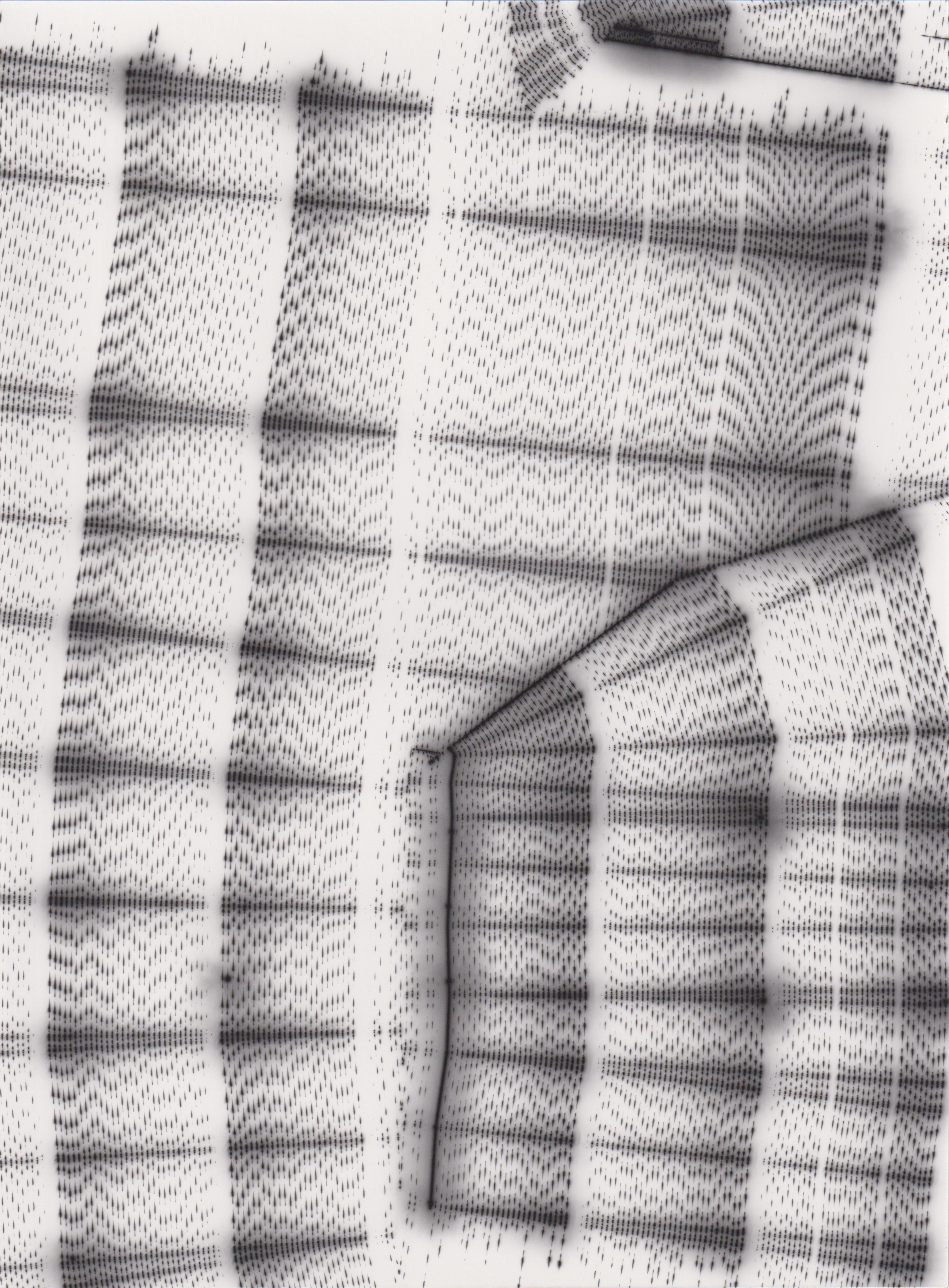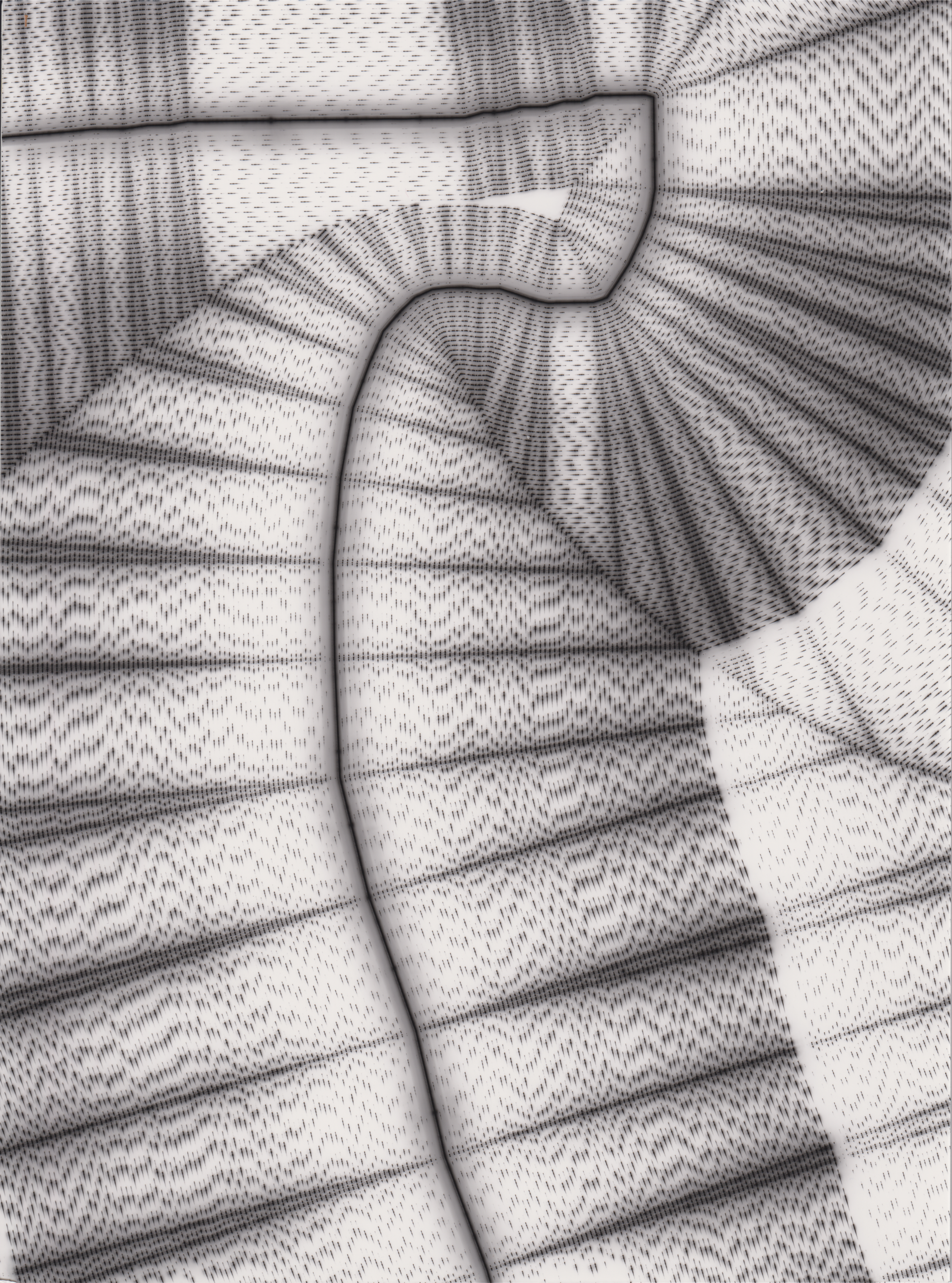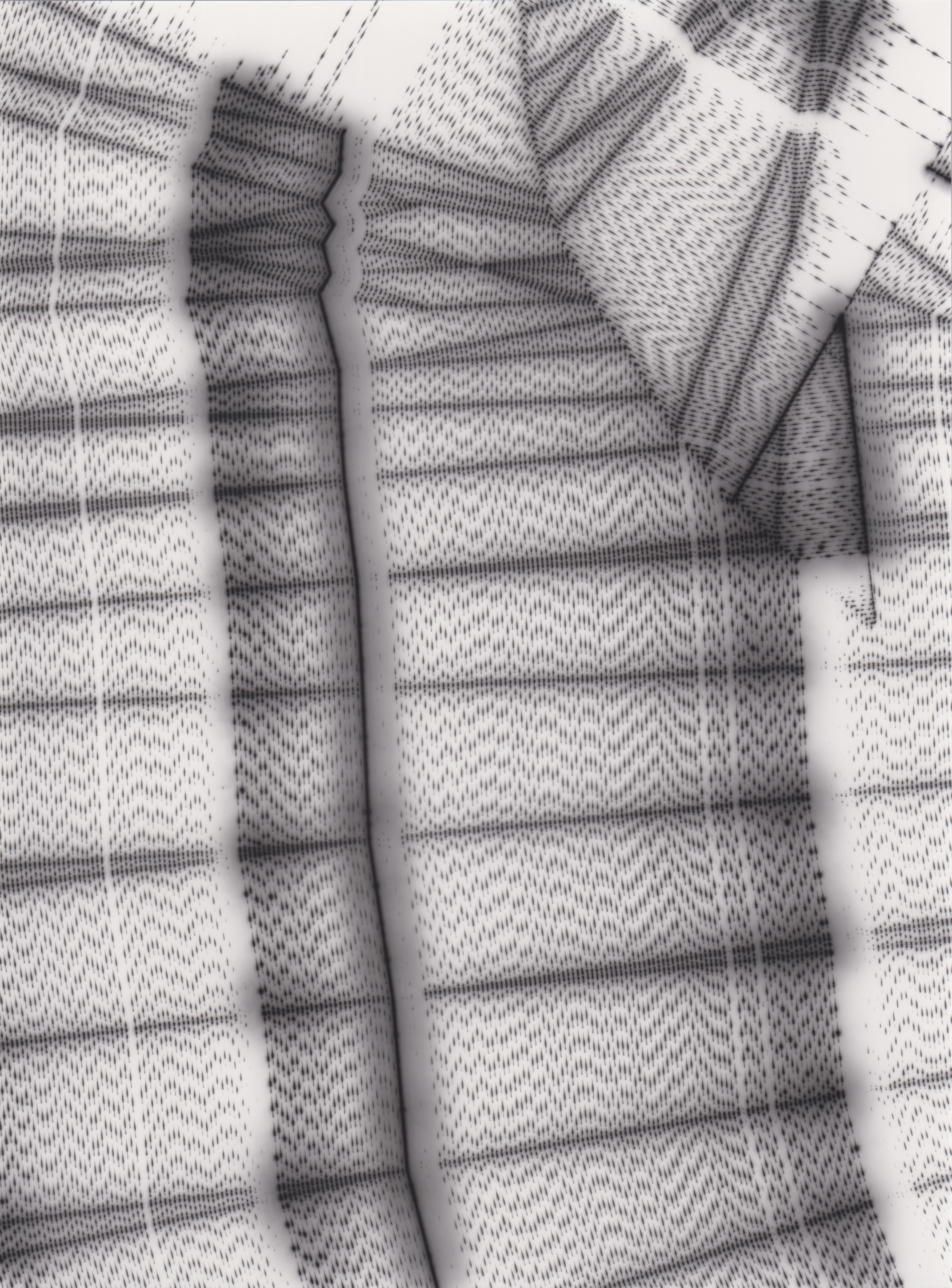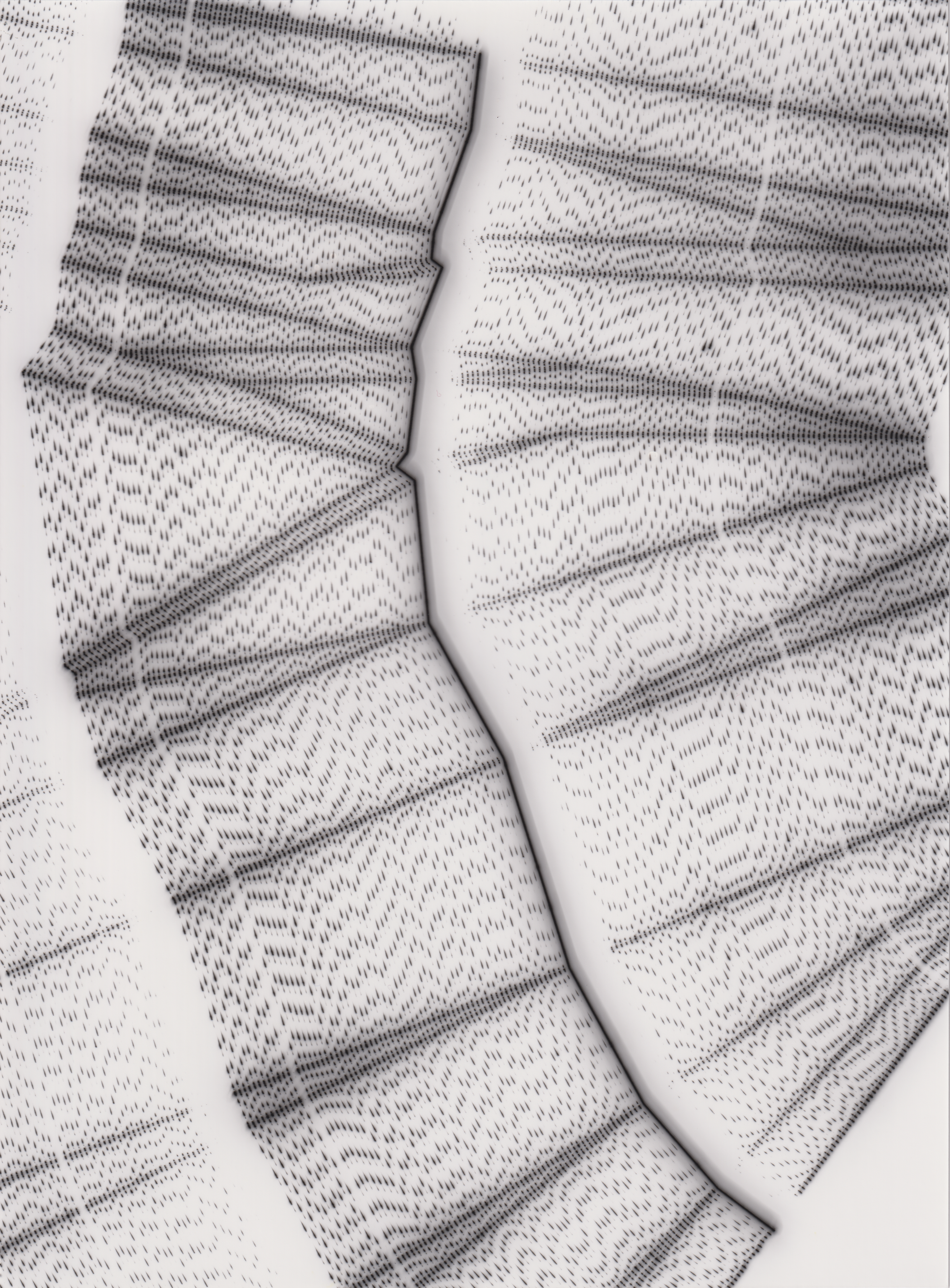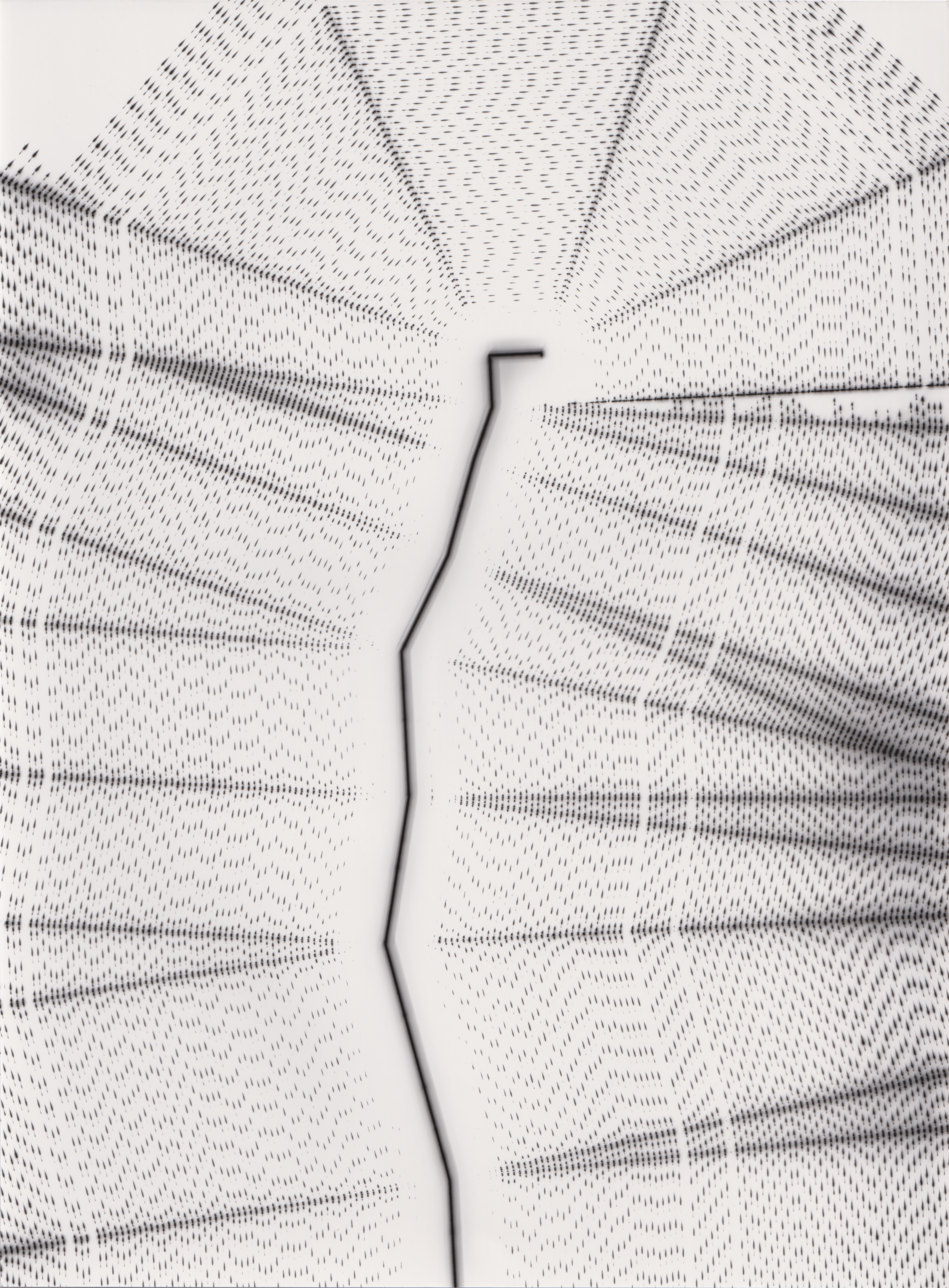 TLDR; These 100 pieces were created by plotting with laser pen on photo paper in a darkroom setting.