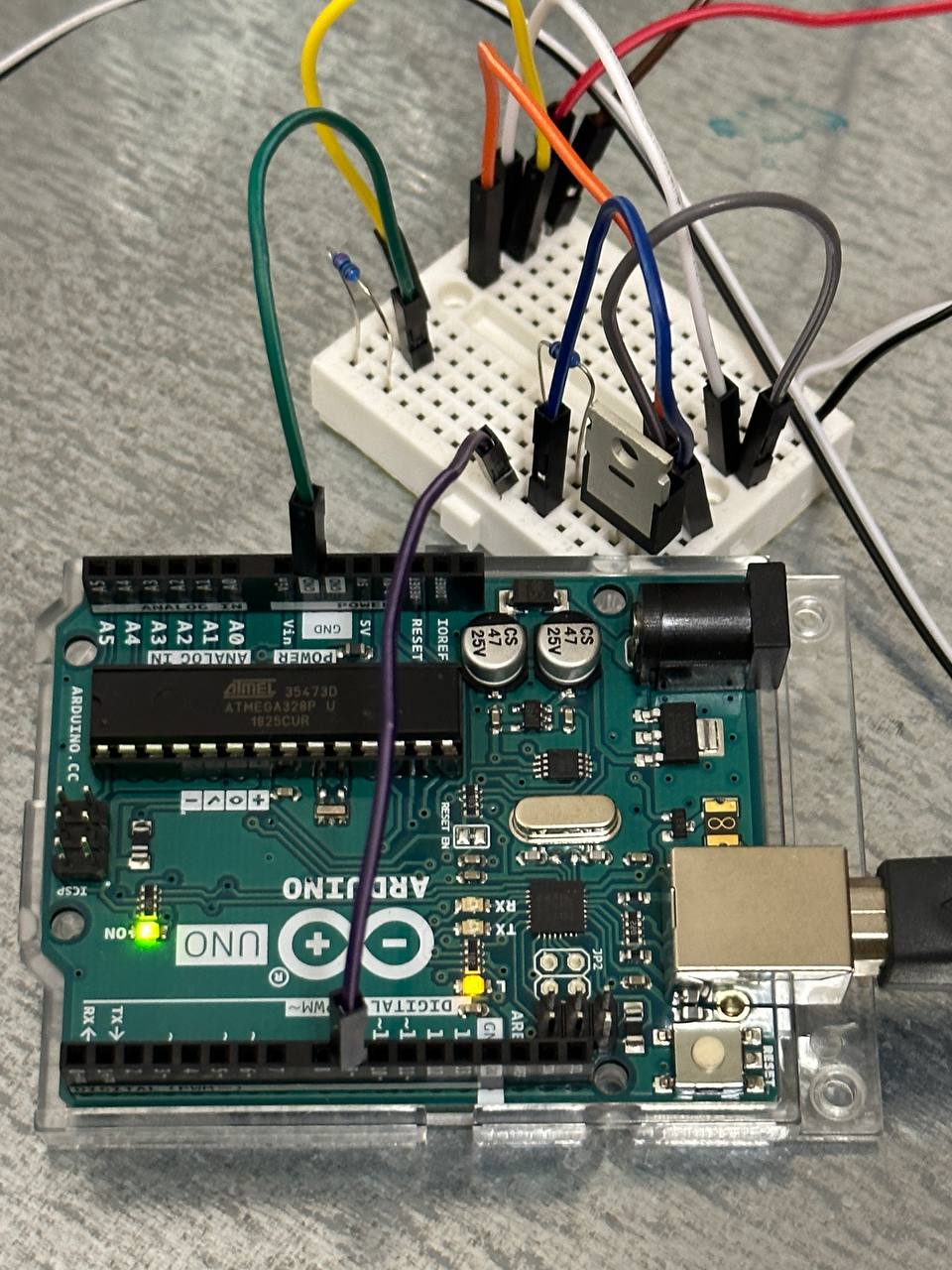 Connected to a simple arduino circuit for turning the laser on/off using PWM