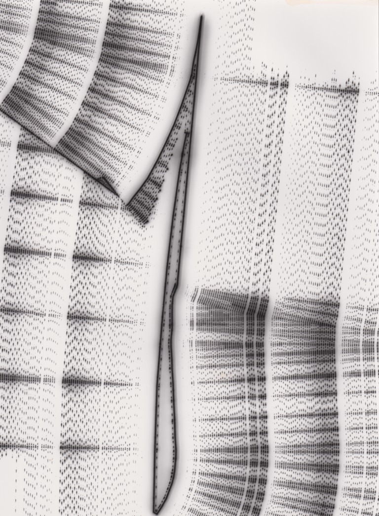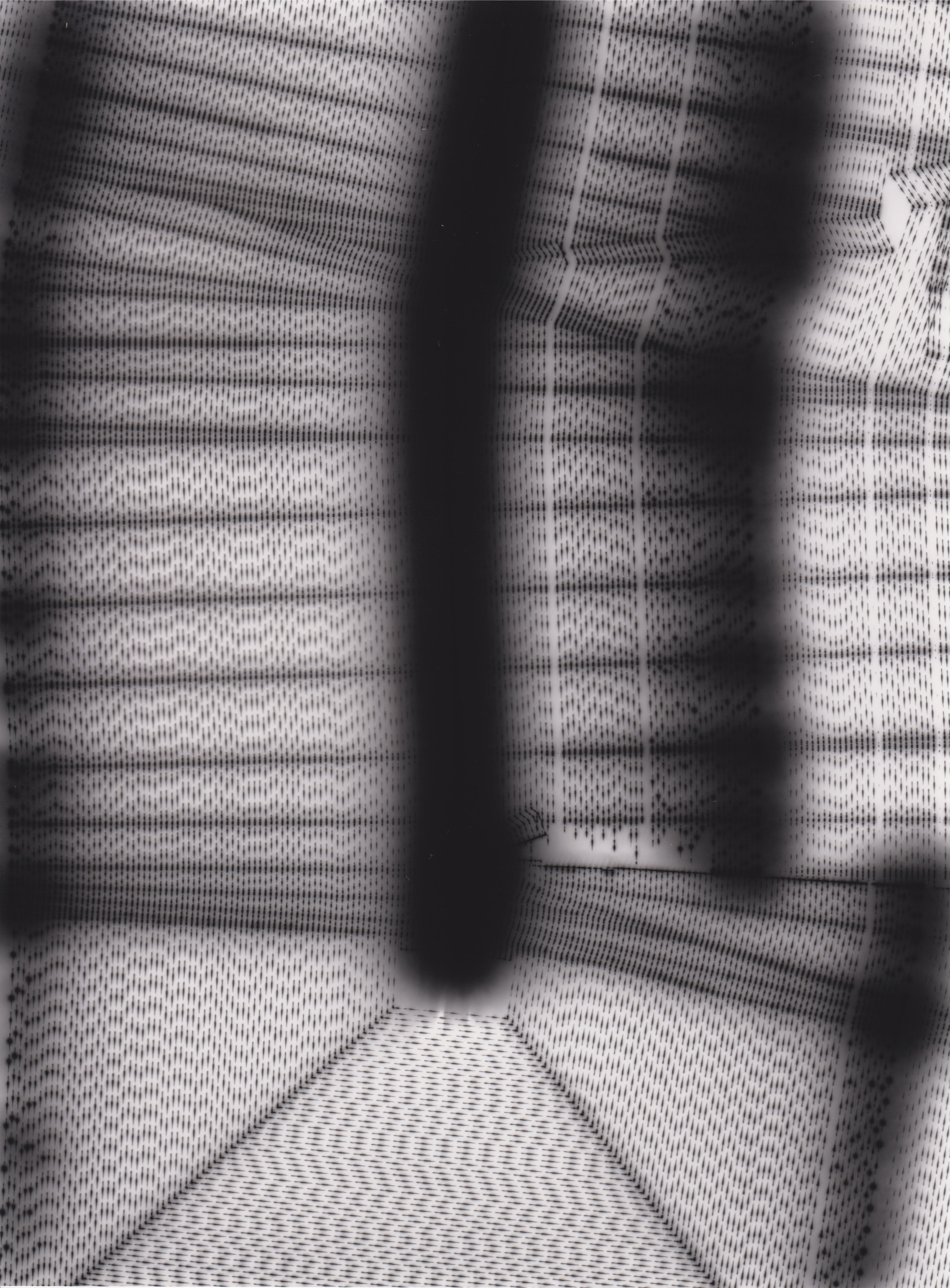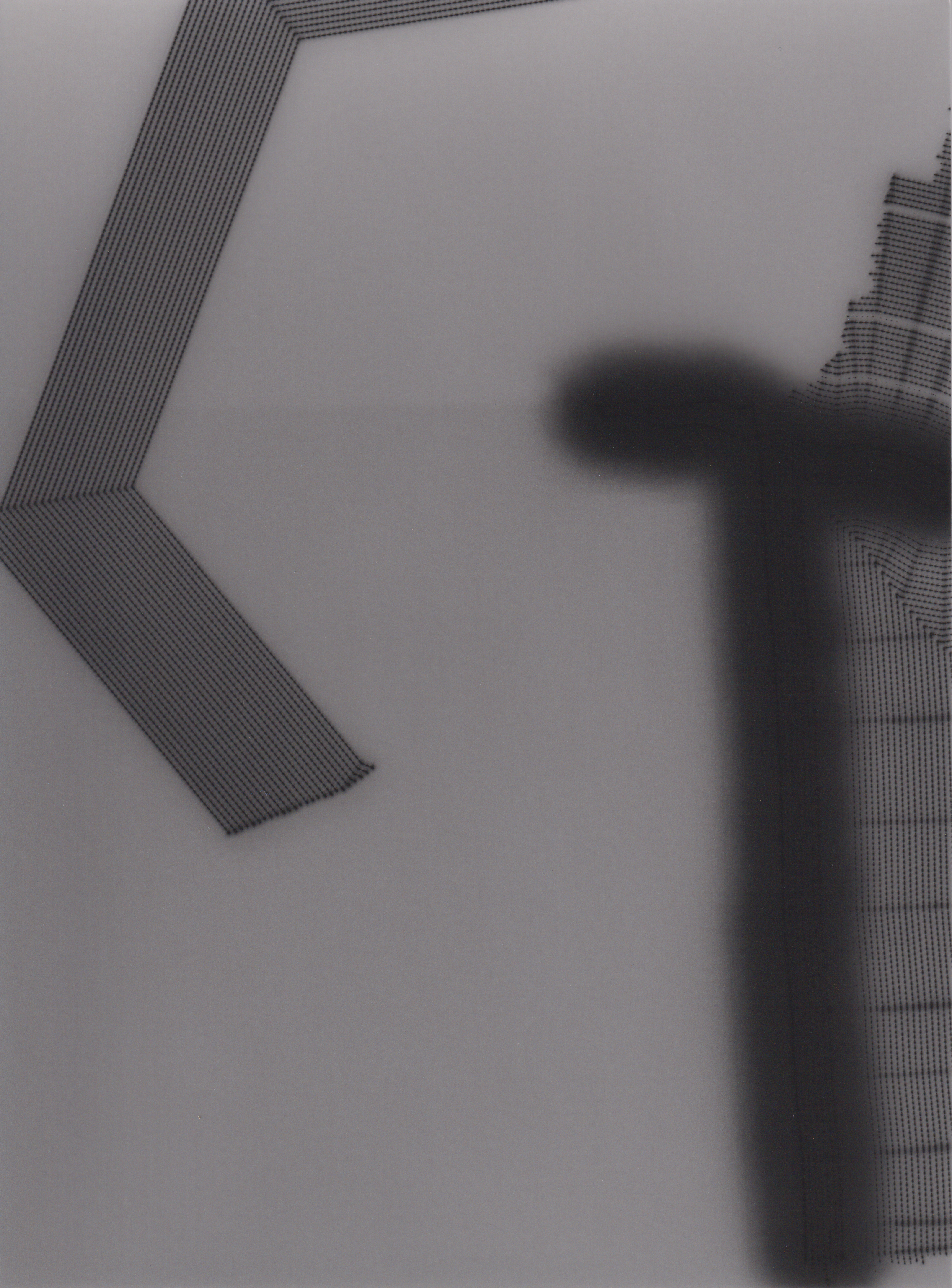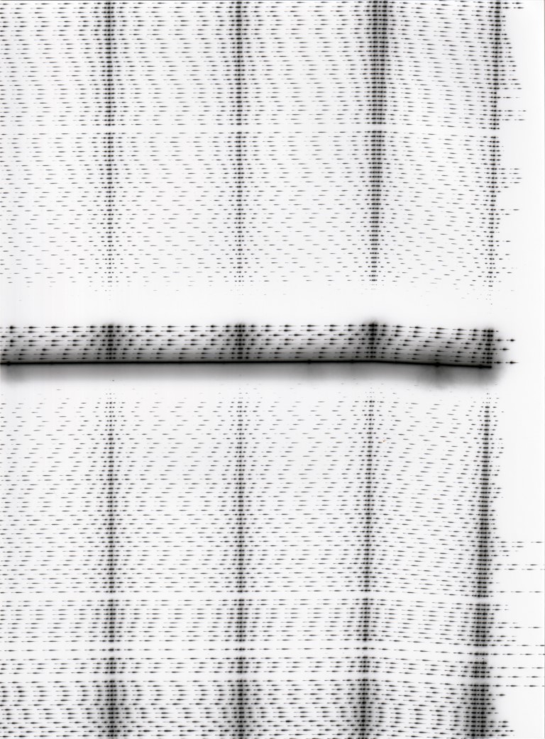 A WIP shot from the process. A regular green laser is moved over photographic paper, exposing it to