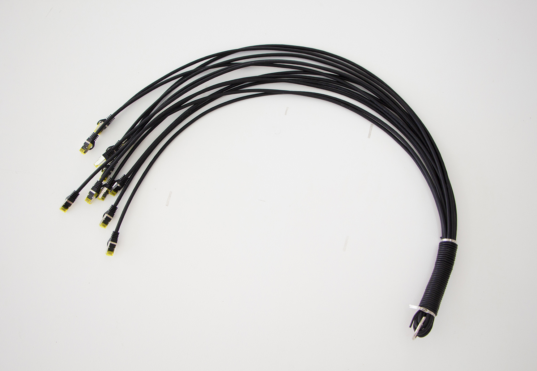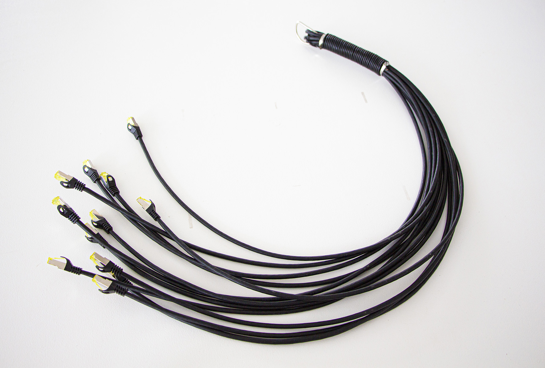 Part of this sculpture are the "Ethernet Whips", an experiment that started as a pre-decessor to the "Data Totem" sculpture. Eventually these objects turned into a failed side-project that got incorporated into the sculpture that was first exposed at the "Feeling Data" solo exhibition at Erratum Gallery in Berlin and was later also on display at SomoS Art House Berlin.