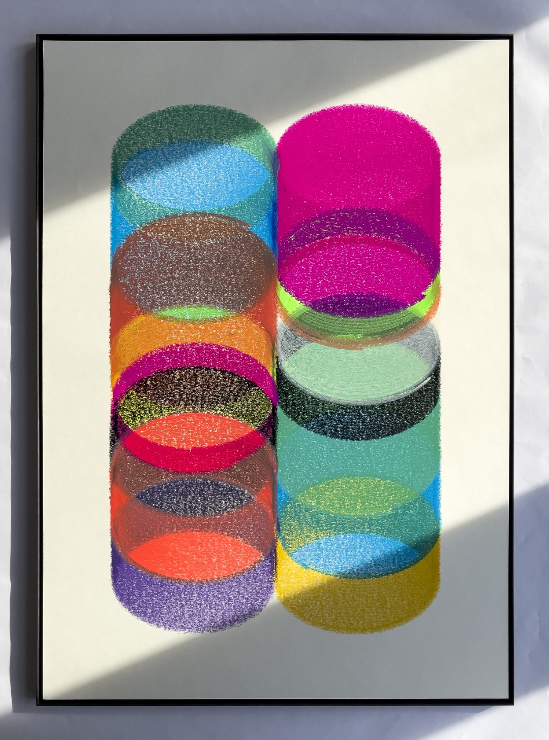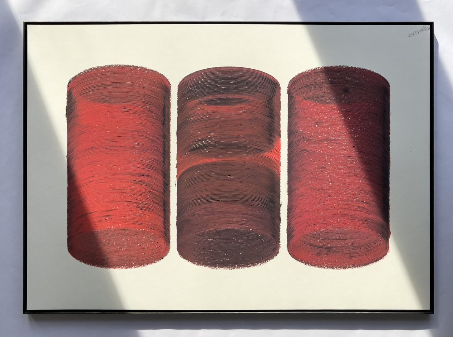 Markal's Quik Stik. These here are various inks, ballpoint pens as well as wax. All works are in A1 size